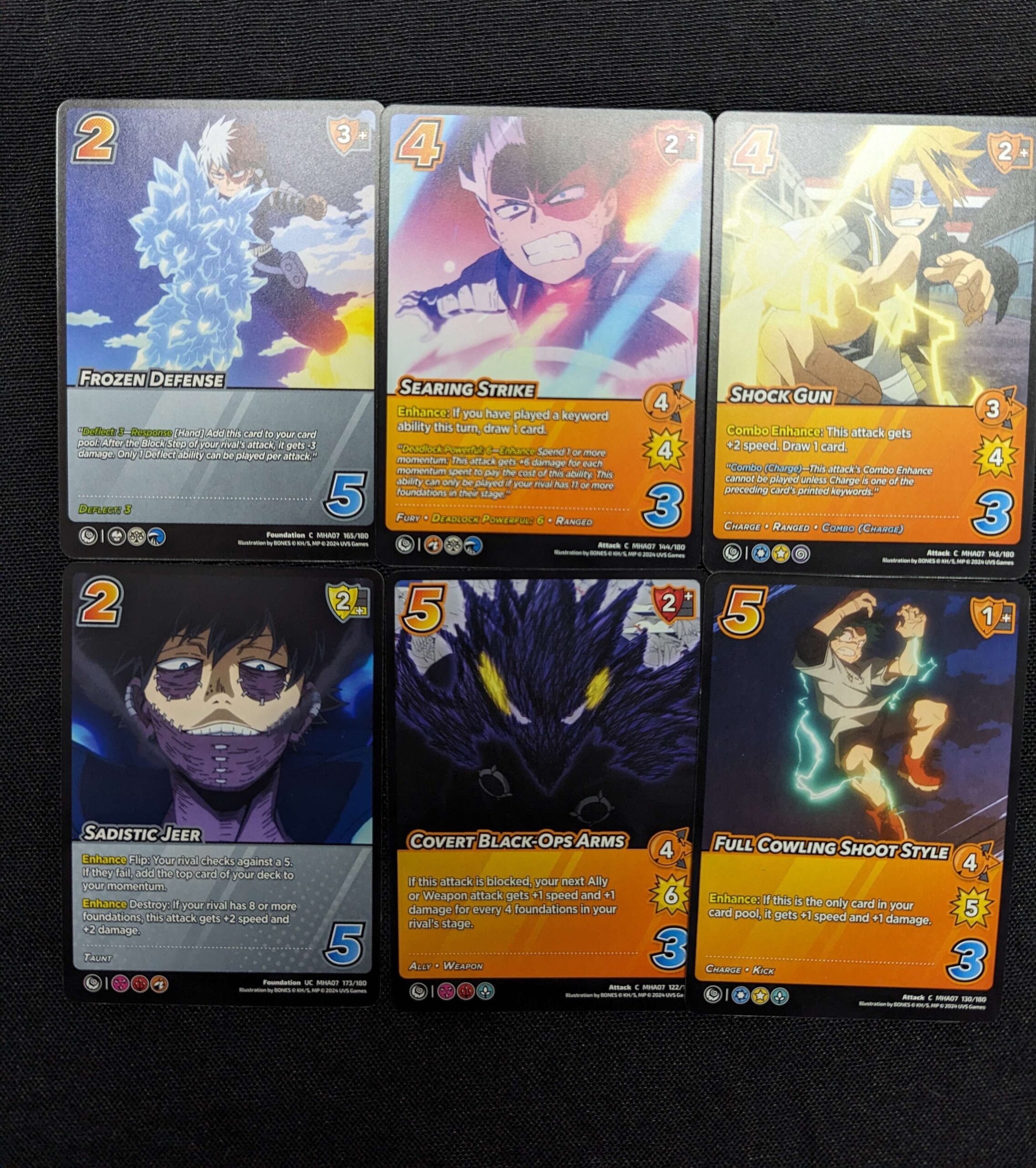Upon receiving these cards, the dynamic and action-packed illustrations immediately impressed me. These illustrations featured iconic scenes and characters from My Hero Academia. The artwork was so captivating that it felt like the characters were leaping off the cards. Additionally, each pack of cards came with a foiled piece. This special piece which added an extra layer of excitement to the unwrapping experience.
