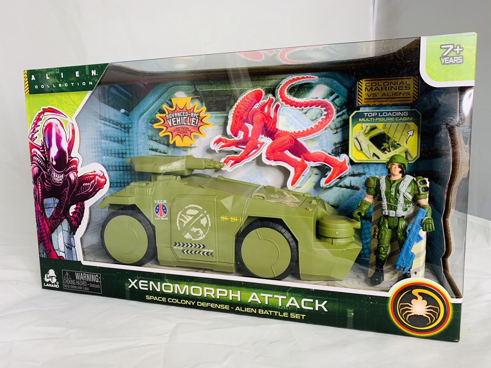 The first of two vehicles from this wave, the Space colony defense – Alien Battle set includes a space marine that sports 5 points of articulation and comes with an Advanced-APC vehicle and gun.