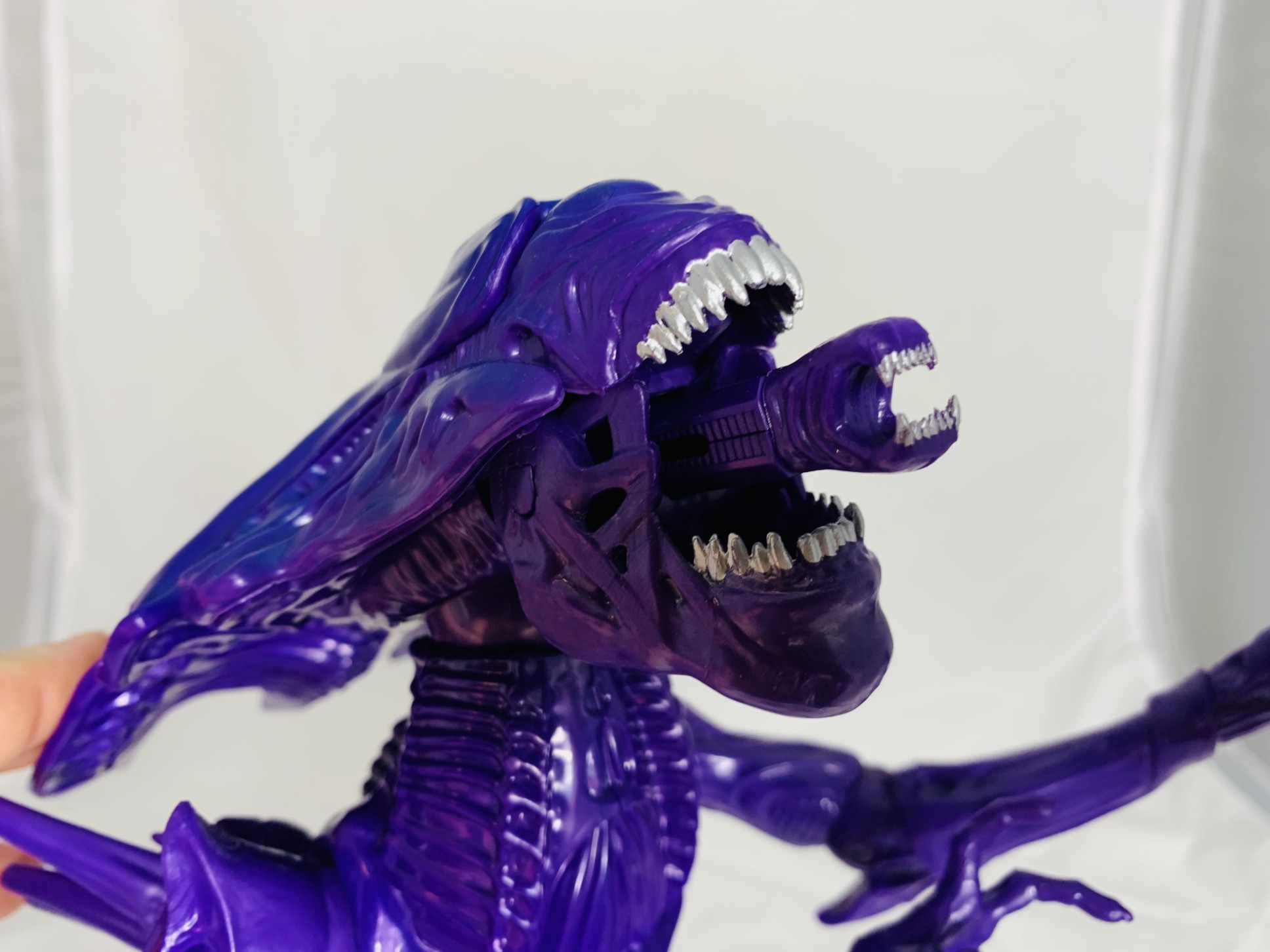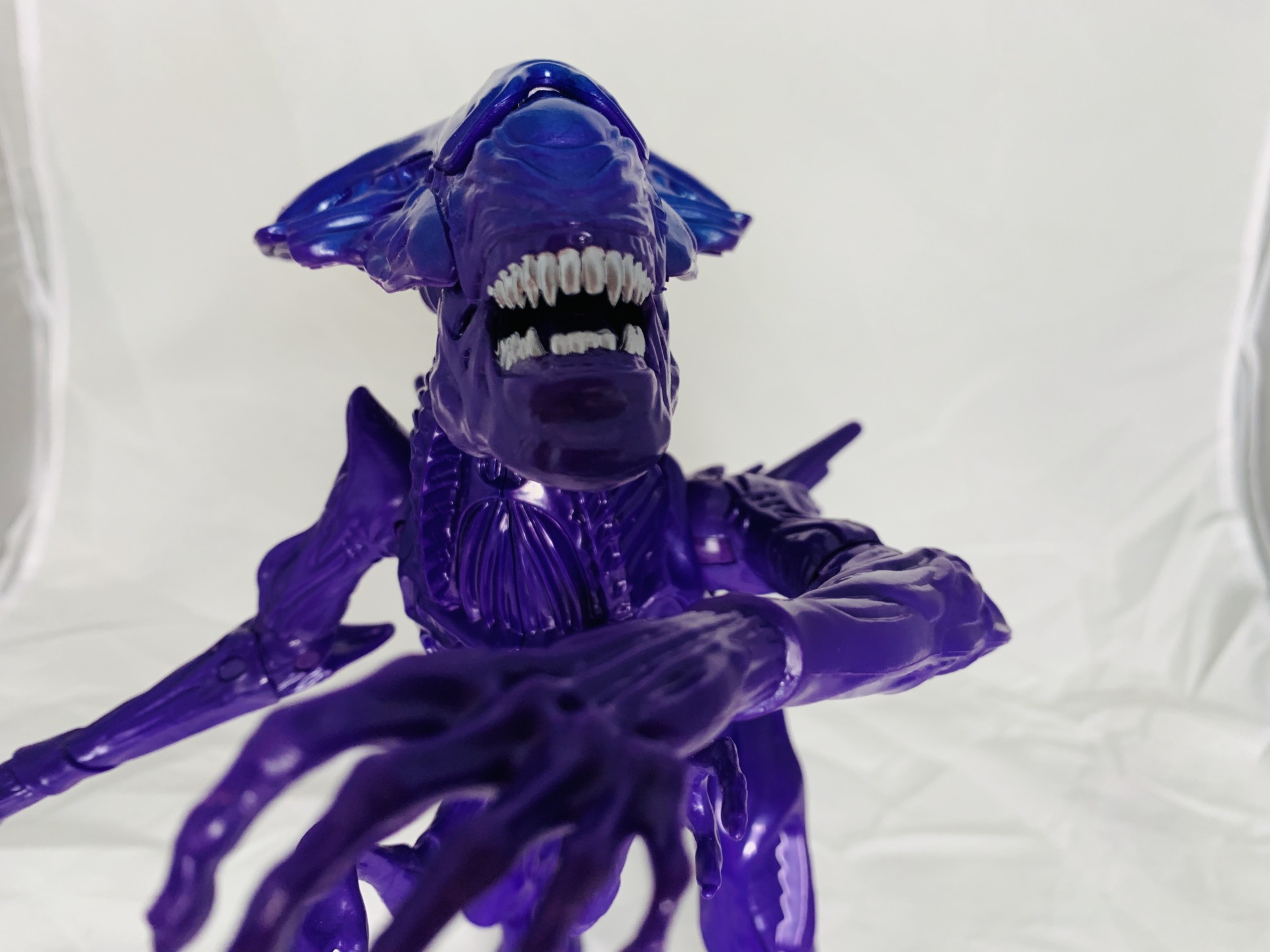 Finally, we come to the biggest toy of this wave, the Alien Queen. This action figure has a whopping 20 points of articulation, stands 12 inches tall and has a jaw chopping feature when you push down on the back of its head. It sports a purple coat of paint with some blue details brushed in on the head and tail.