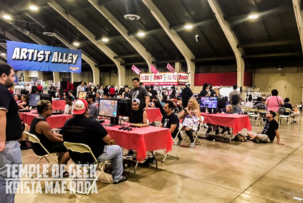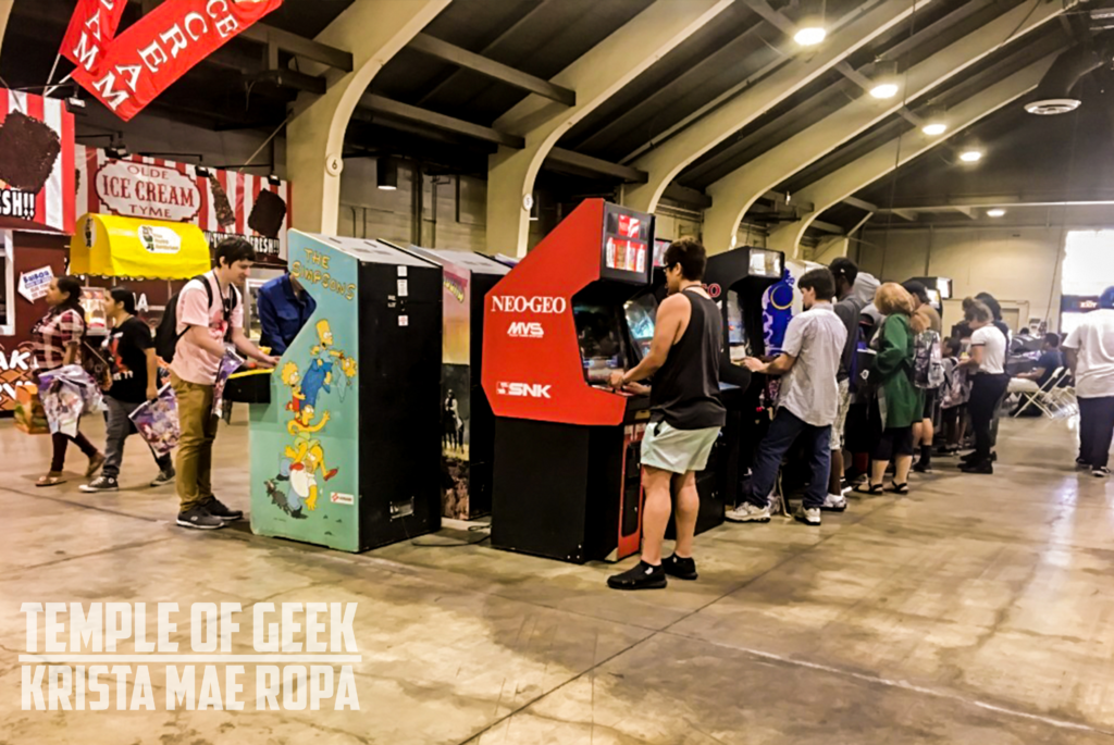 In the middle of the expo hall was where the gaming tournament was set up for visitors to battle it out. A schedule was set up for different games each day. Games included in the tournament were Mariokart 8, Street Fighter, and Dragon Ball Z. There were also rows of computers set up for attendees to participate in other games such as Fort Nite. Although not tied to the Gaming Tournament, there a row of old school arcade games was set up.