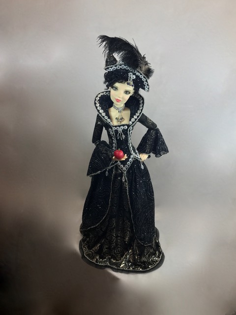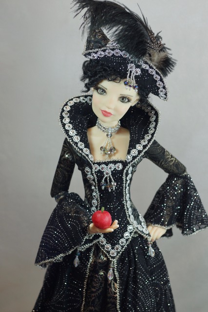 I can say that I sculpt the originals in clay, sometimes piece by piece and other times in whole then cut up and joint and fine tune.  Once all the engineering is figured out so the doll will take many poses and balance well, then everything is sanded smooth.  After which, I make silicon molds of every little piece. The average doll has 24 pieces to her ball jointed body.  Each piece is cast in resin, then strung up.  The whole doll is painted and costuming can begin.  Although if I already have a similar or same size body, I often work on costuming before making the actual doll.  Some costumes take as much effort as making a doll body & face.  Others much less.  But sewing and crafting everything (costume wise) in such small scale is far more difficult than making clothing, shoes and wigs for humans.  Thankfully the way I work is on inspiration not coffee but with passion pumping through my veins.  I avoid deadlines and just enjoy creating about half the time. Then usually the next show, convention, event or article comes along to put some kind of deadline out there that I must aspire to by which point I have several projects at least halfway done and some near done.  I’m a crammer by nature since school days.  So, then with a goal deadline in sight, I cram to finish the top several projects I’m working on in time.  Since my art tends to grow out of stuff going on in my life, I usually have several works in progress on a cohesive theme, that then becomes my theme for that show or event.  Sometimes when I’m really into it, the theme can last for a whole year’s collection like my 2018 collection which just recently debuted at WonderCon: Fangirl Fine Art Dolls.