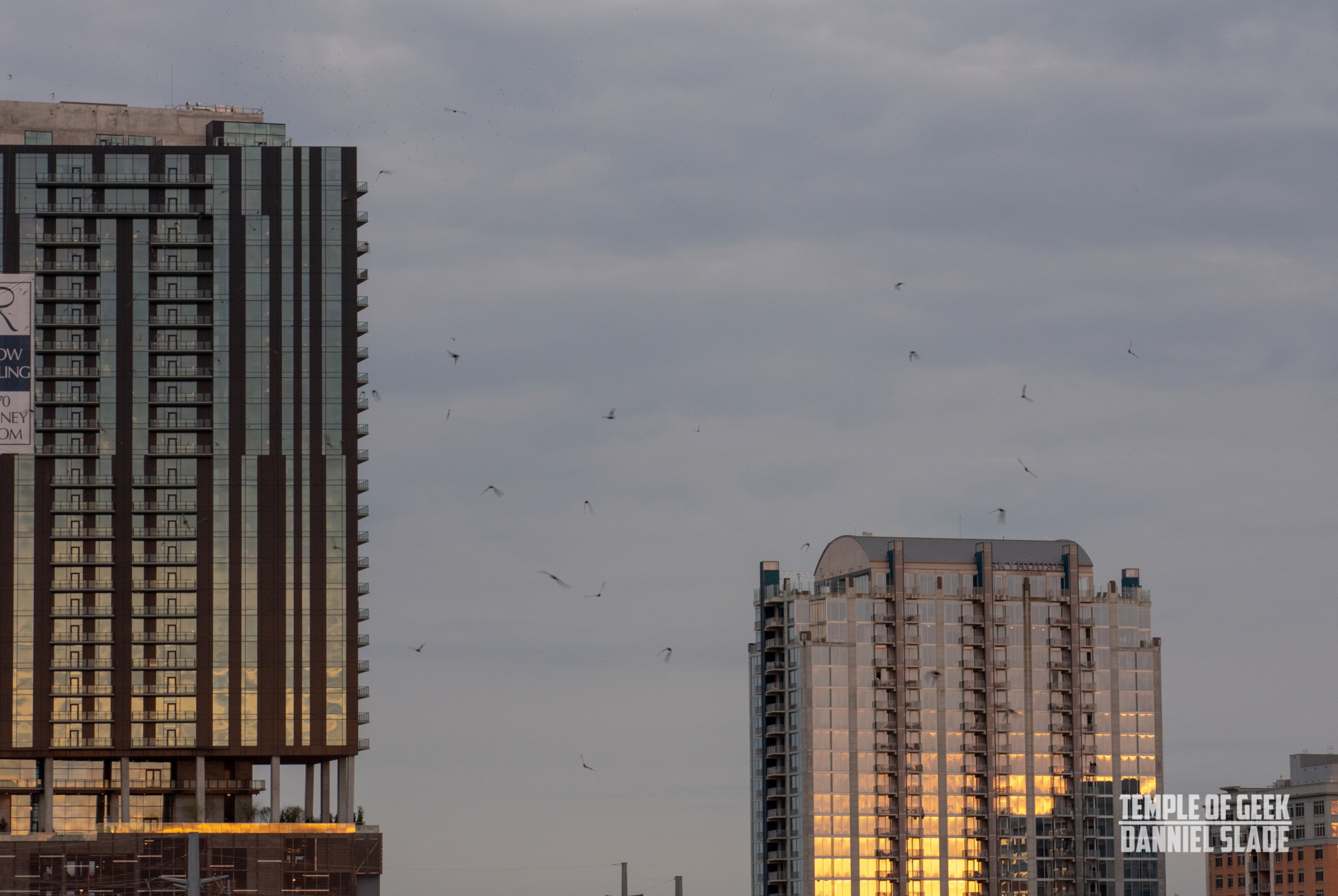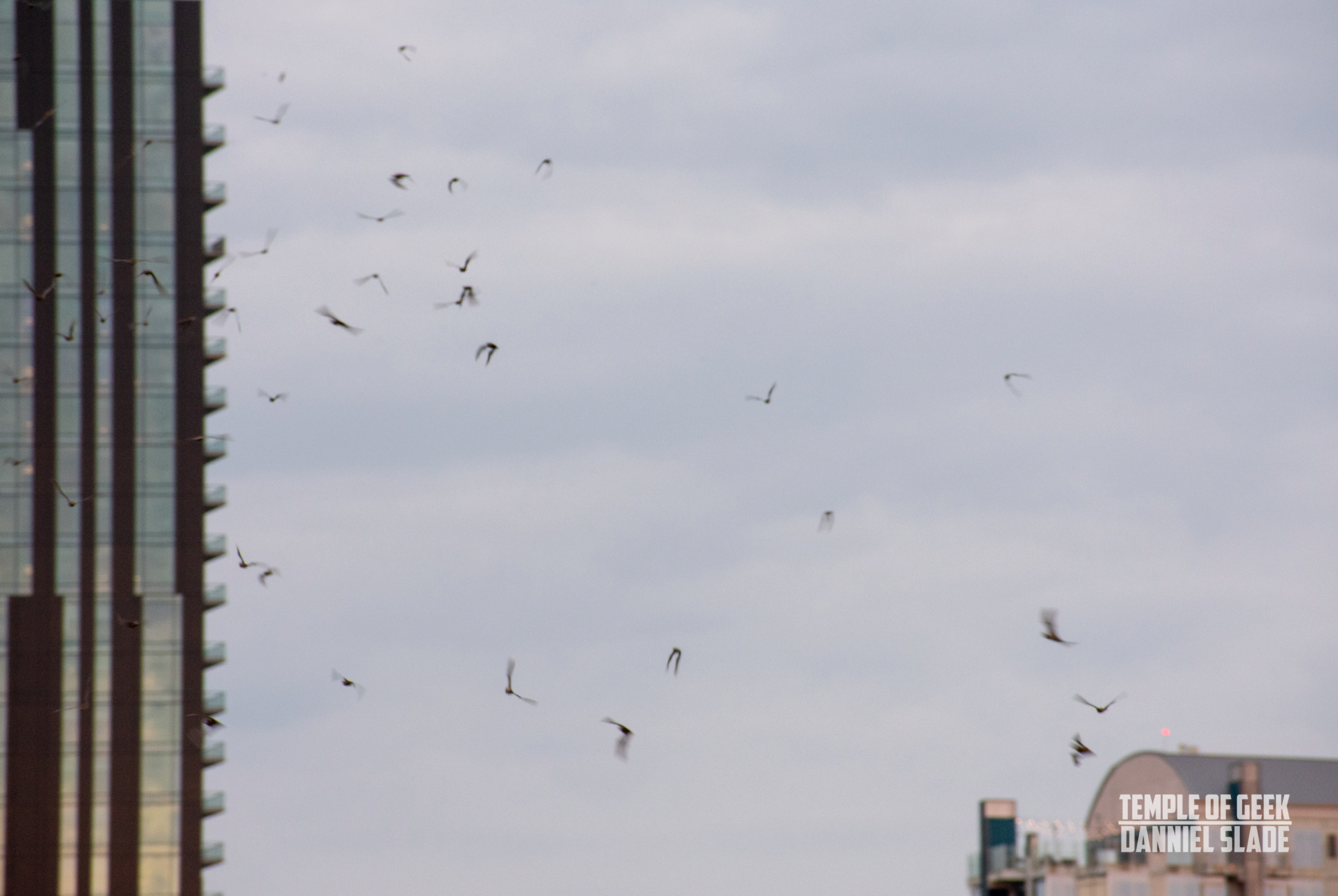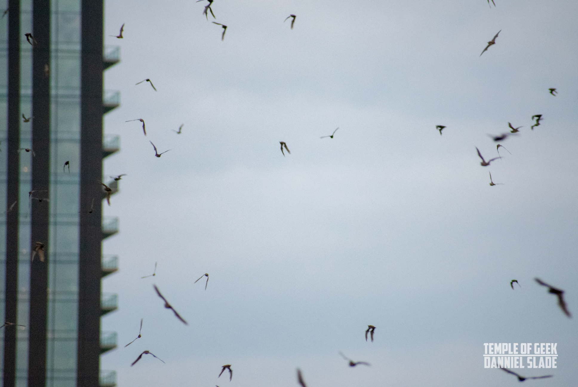 Finally, the time everyone was waiting for arrived! The bats emerged from under the bridge to take flight in the Austin skyline. If you never have seen the bats in Austin Texas, this is definitely something that needs to be witnessed! As they departed, you could hear them making sounds almost as if they were saying happy birthday to the caped crusader.