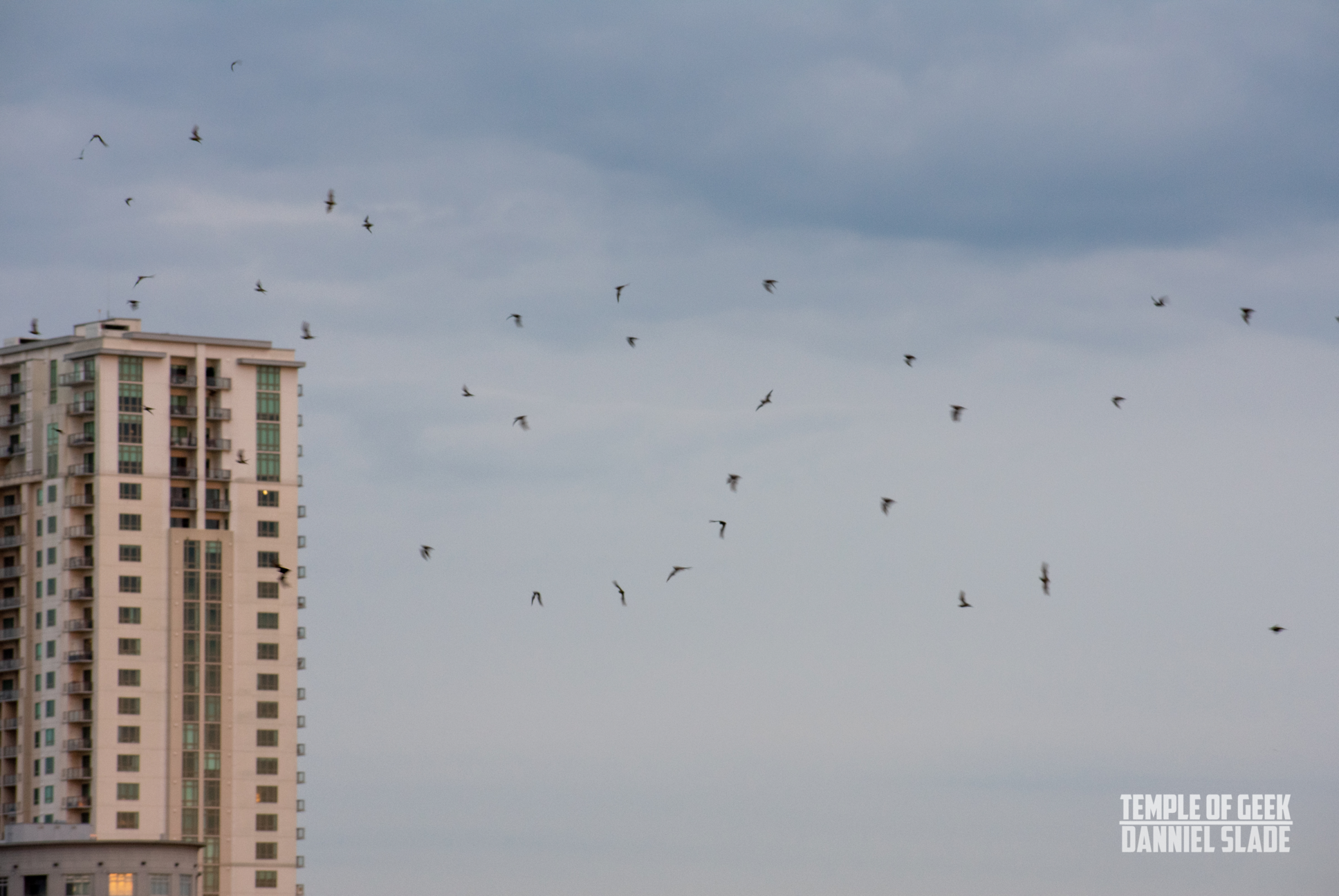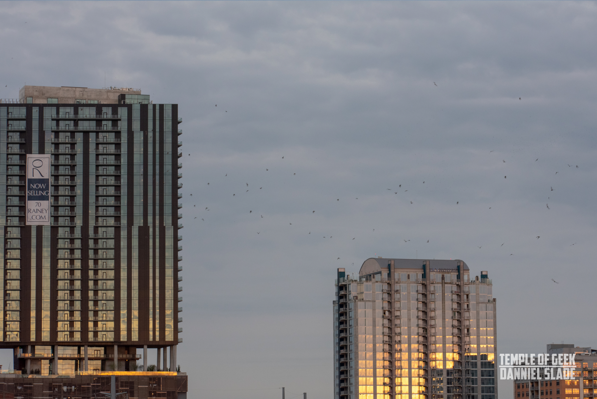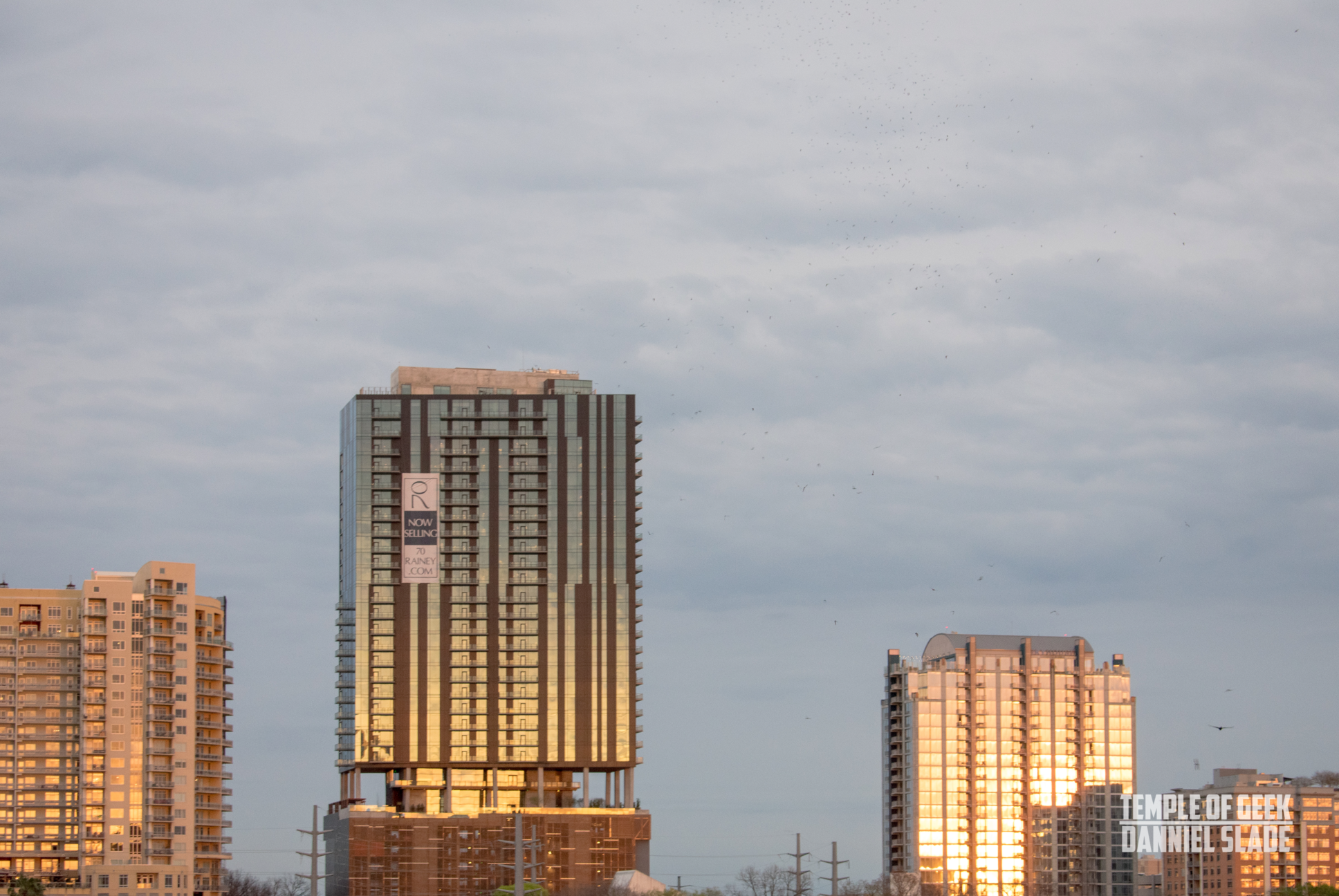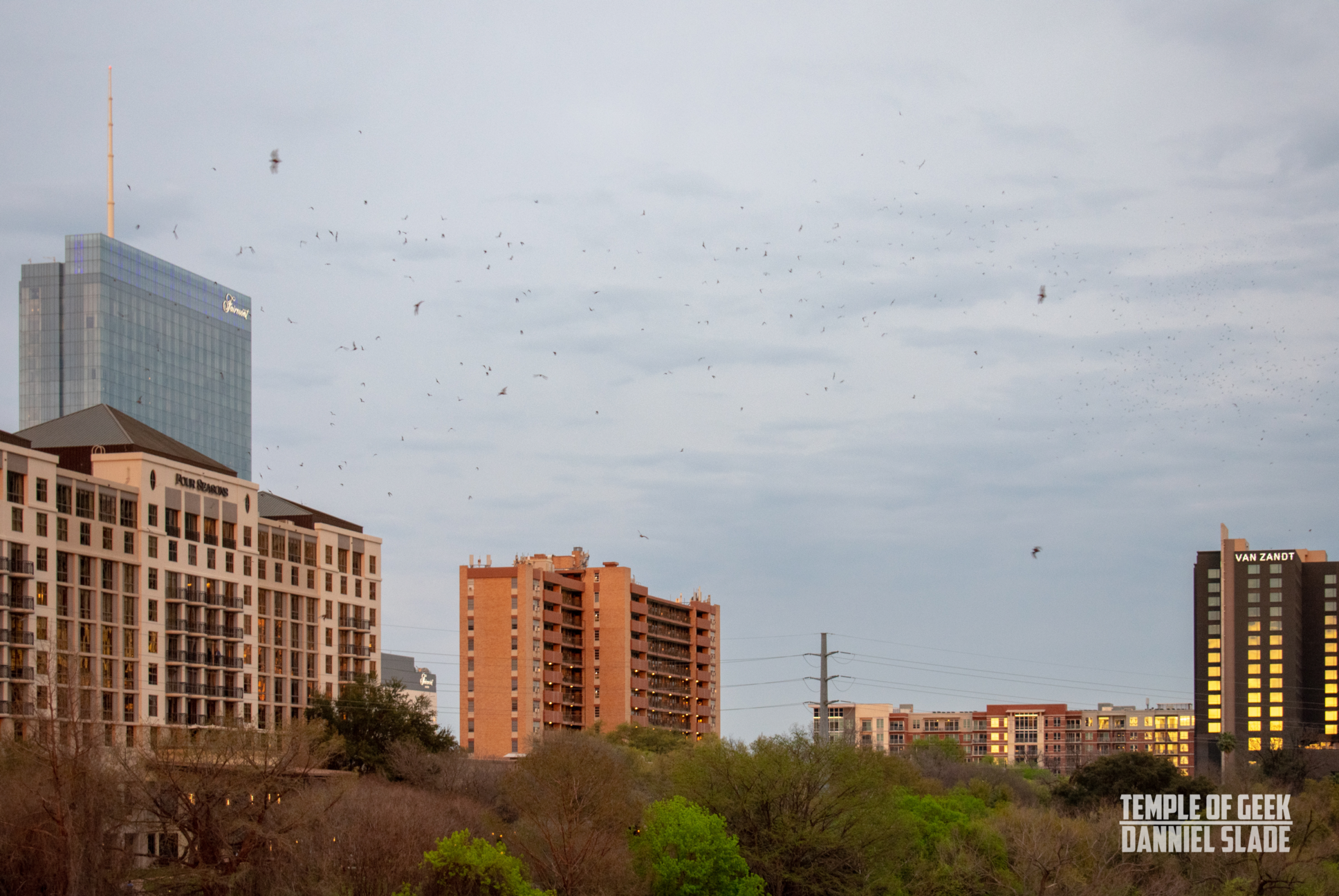 Finally, the time everyone was waiting for arrived! The bats emerged from under the bridge to take flight in the Austin skyline. If you never have seen the bats in Austin Texas, this is definitely something that needs to be witnessed! As they departed, you could hear them making sounds almost as if they were saying happy birthday to the caped crusader.