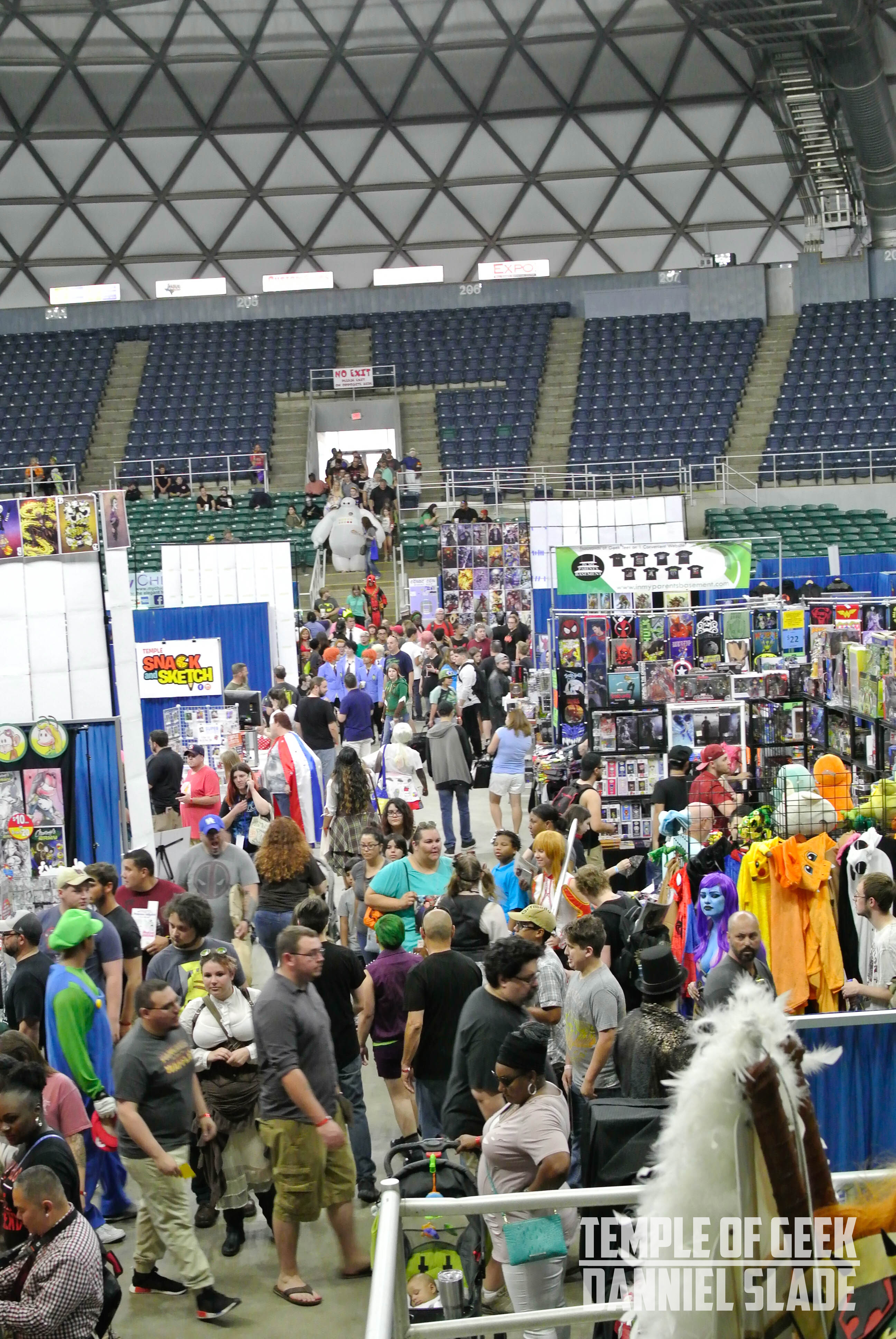 The entire Expo Center was rented out for this event. There was an estimated 10,000 tickets that pre-sold before the convention. On day one, there was a estimated 90 minute wait to get into the con. This was a huge issue with most of the guests as the lines were out in the Texas heat. Now honestly, this was the only issue that I could see with the show. As with any new conventions, their will be learning pains. This convention was no different and on day two, there was no issue getting in. If you look at the pictures below, you will see some of the traffic that moved through the main arena floor.