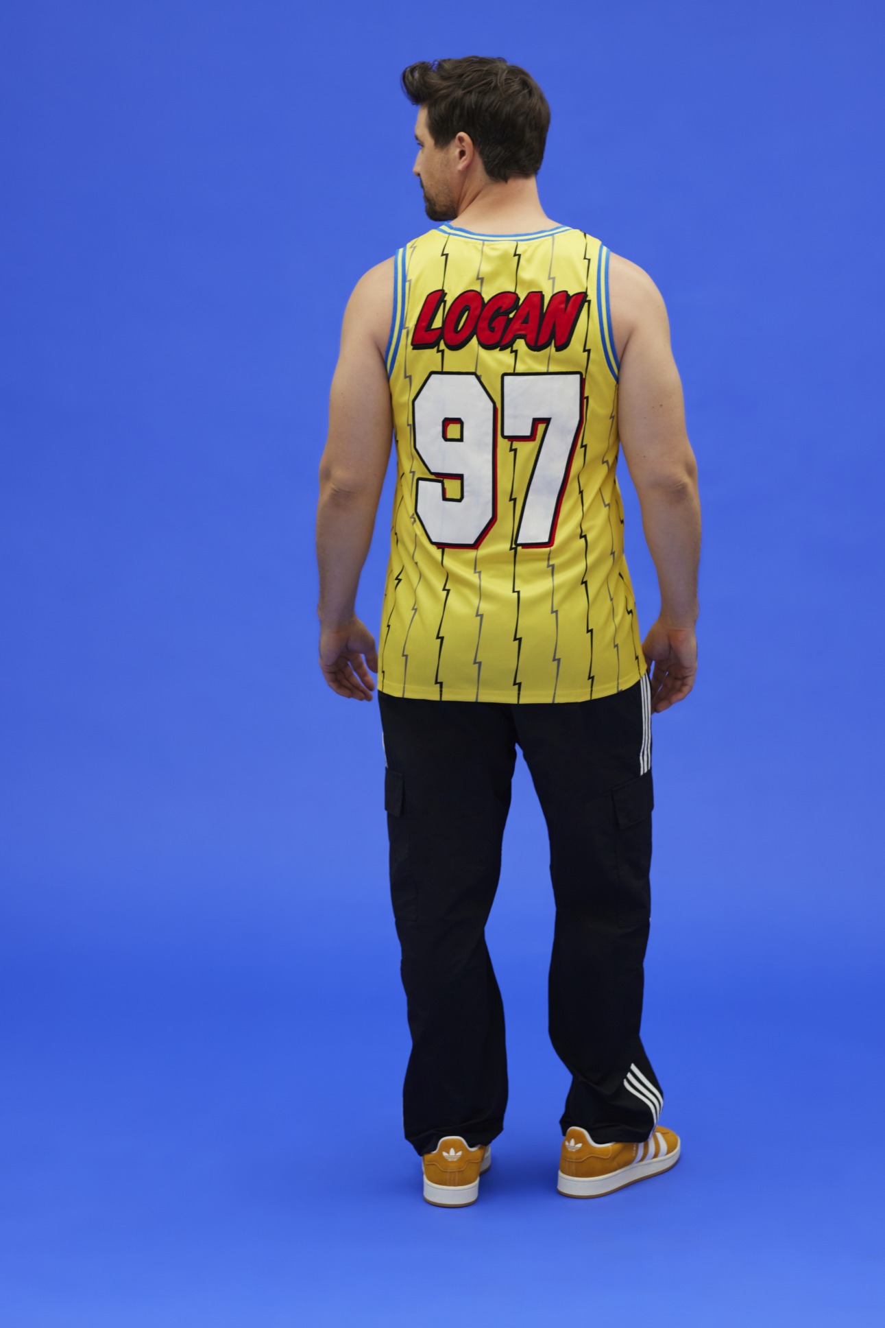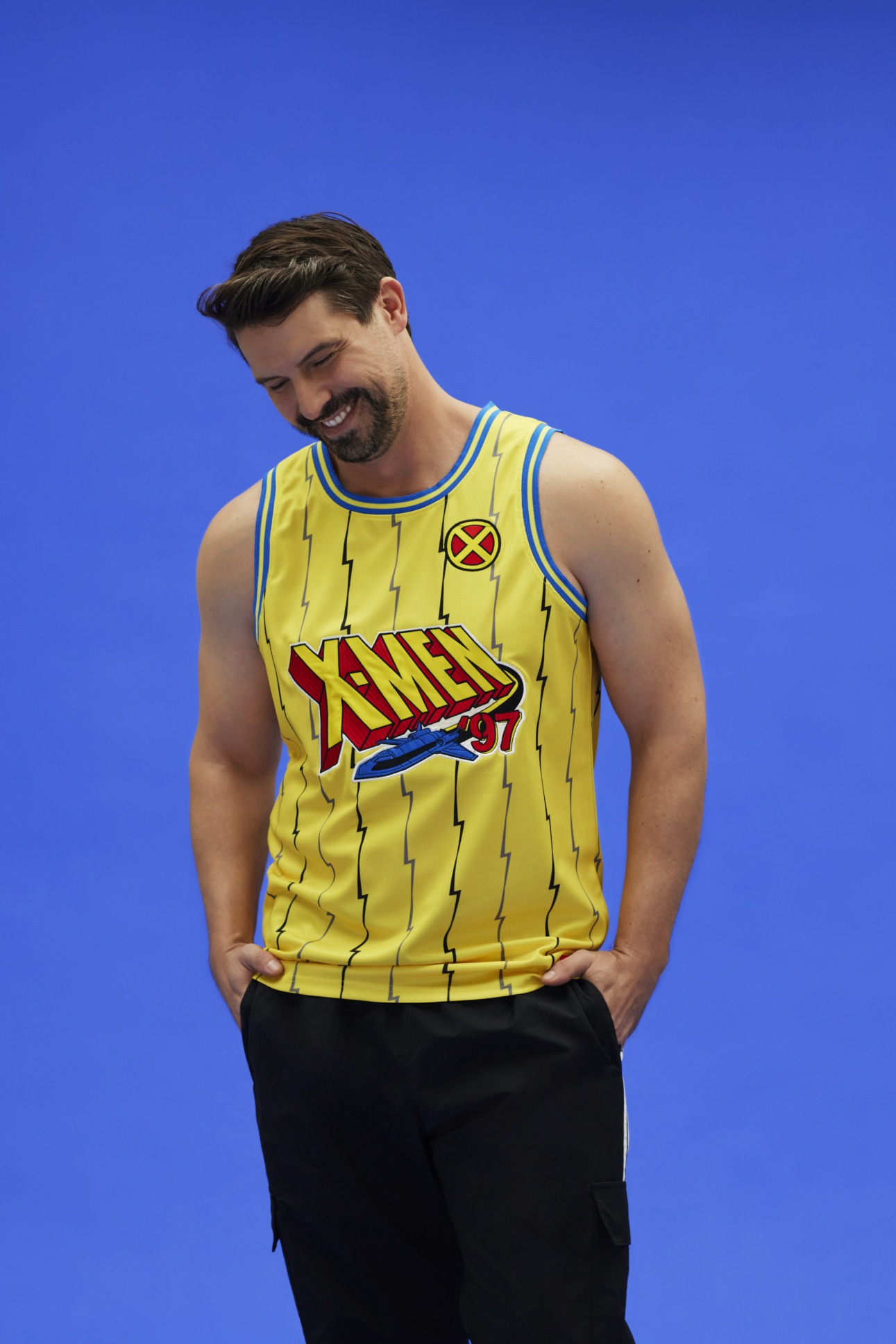 Featuring an embroidered X-Men logo on the front, the back of the shirt includes “Logan 97” lettering. With striped details and ribbed hems, this basketball jersey is perfect for Marvel and sports fans alike.