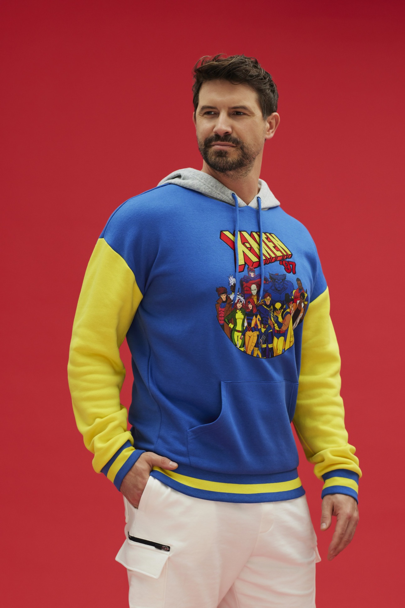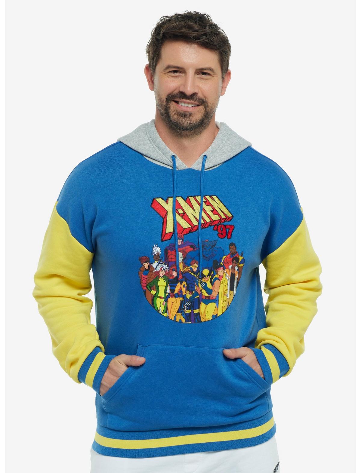 The Marvel X-Men ’97 Group Portrait Colorblock Hoodie features a portrait of the X-Men beneath embroidery of the show’s title, this sweatshirt includes color-blocked sleeves and a hood.
