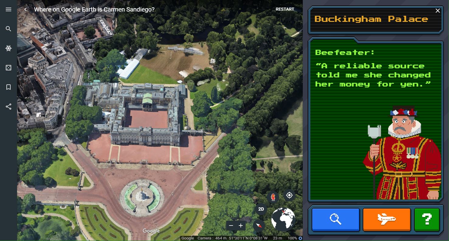 In this game, you can collect clues by talking to witnesses and traversing the globe to find where Carmen might be with the Crown Jewels of England. Just like previous games in the series, Google Earth is hoping that this will help people learn more about different parts of the world.