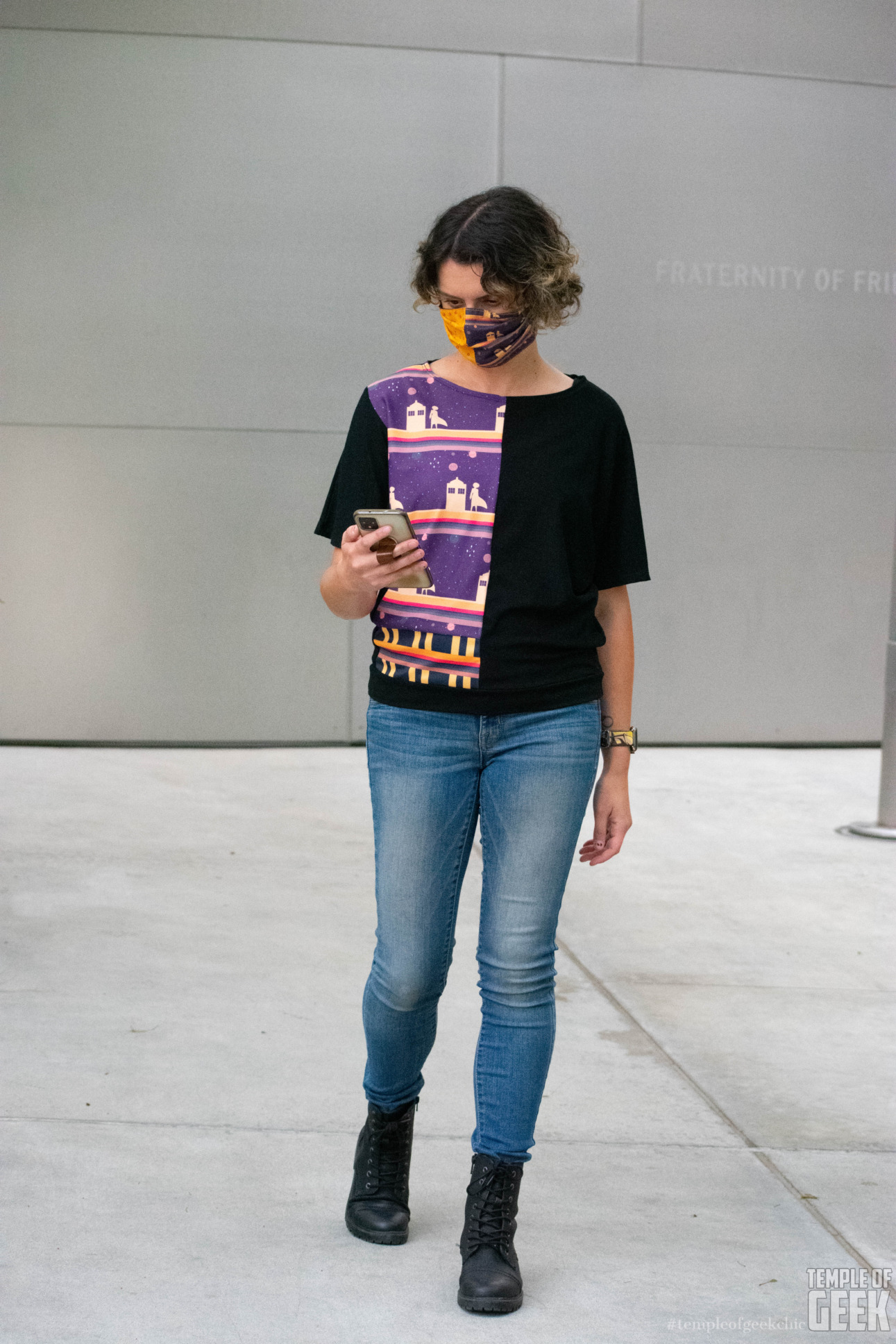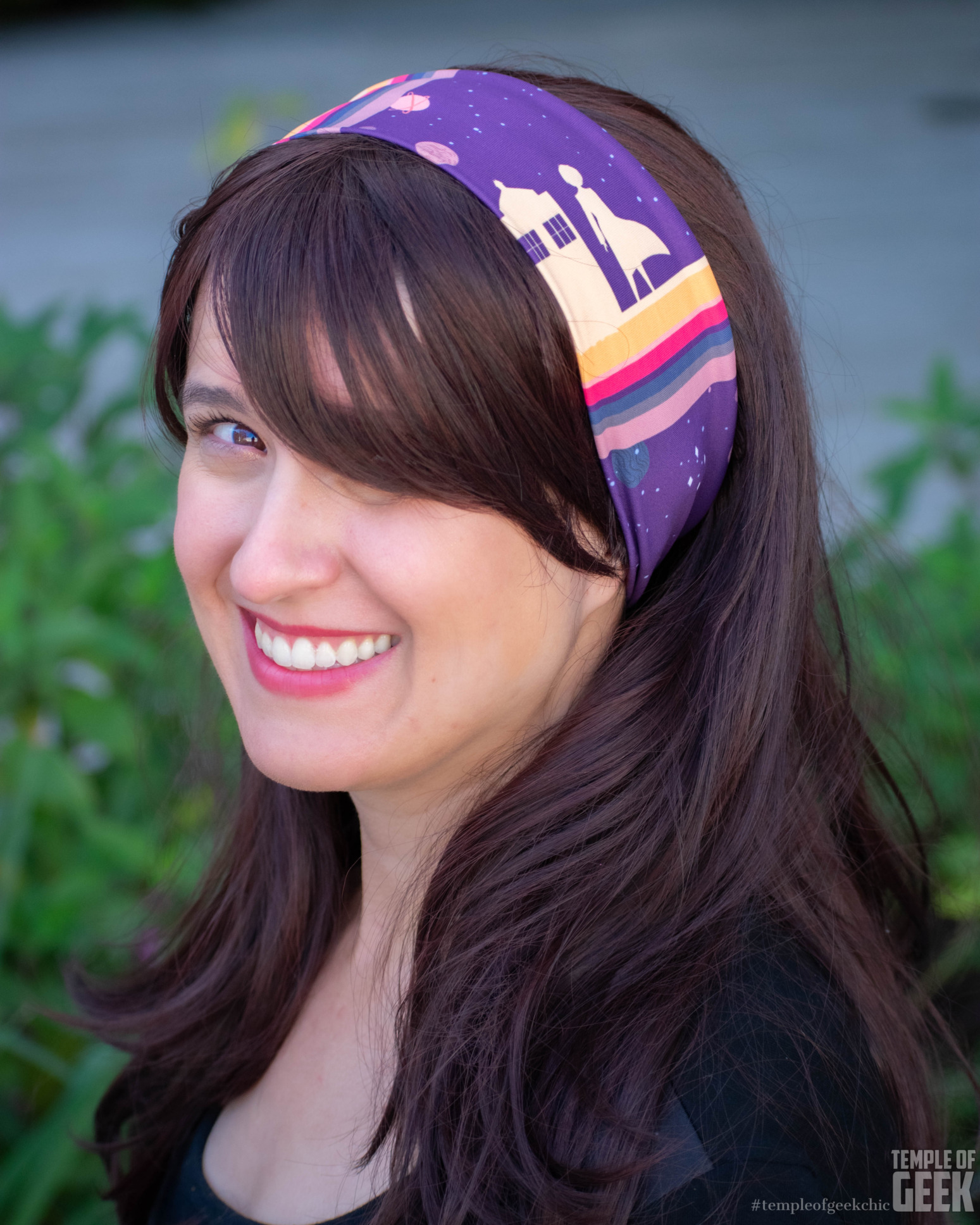 We also tried out face masks, headbands, and scrunchies in Heroicouture’s Doctor 13 print.