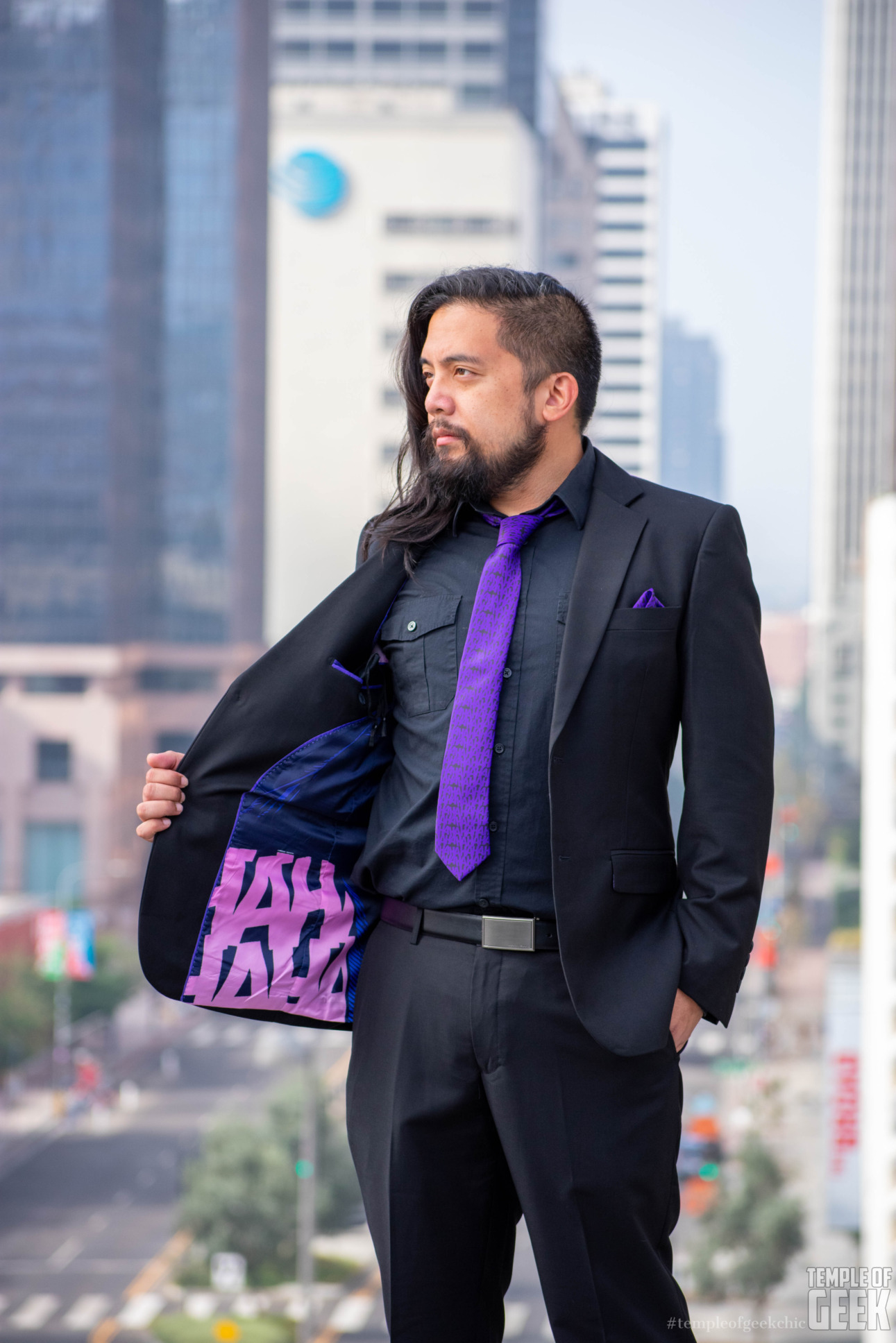 We stan Fun.com’s fandom suits because of their quality, versatility, and geeky details. The DC-themed suits and TARDIS jacket are especially memorable pieces. We and the models had an amazing time styling and wearing them at our shoot in downtown L.A.
