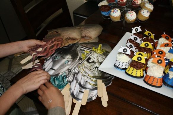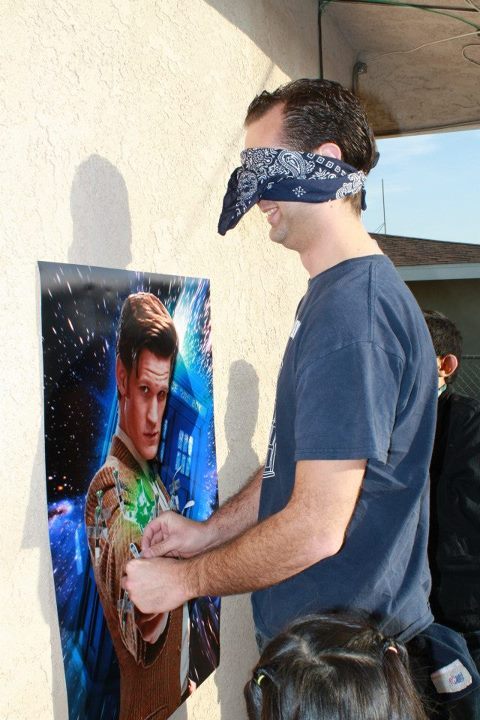 “Pin The Screwdriver on The Doctor” was a fun game we came up with for a Doctor Who themed birthday party a few years ago. All you need is a blindfold, a poster or photo of your favorite Doctor with their screwdriver extended, and some cutout paper screwdrivers. Try to pin (or tape) the screwdriver while blindfolded.