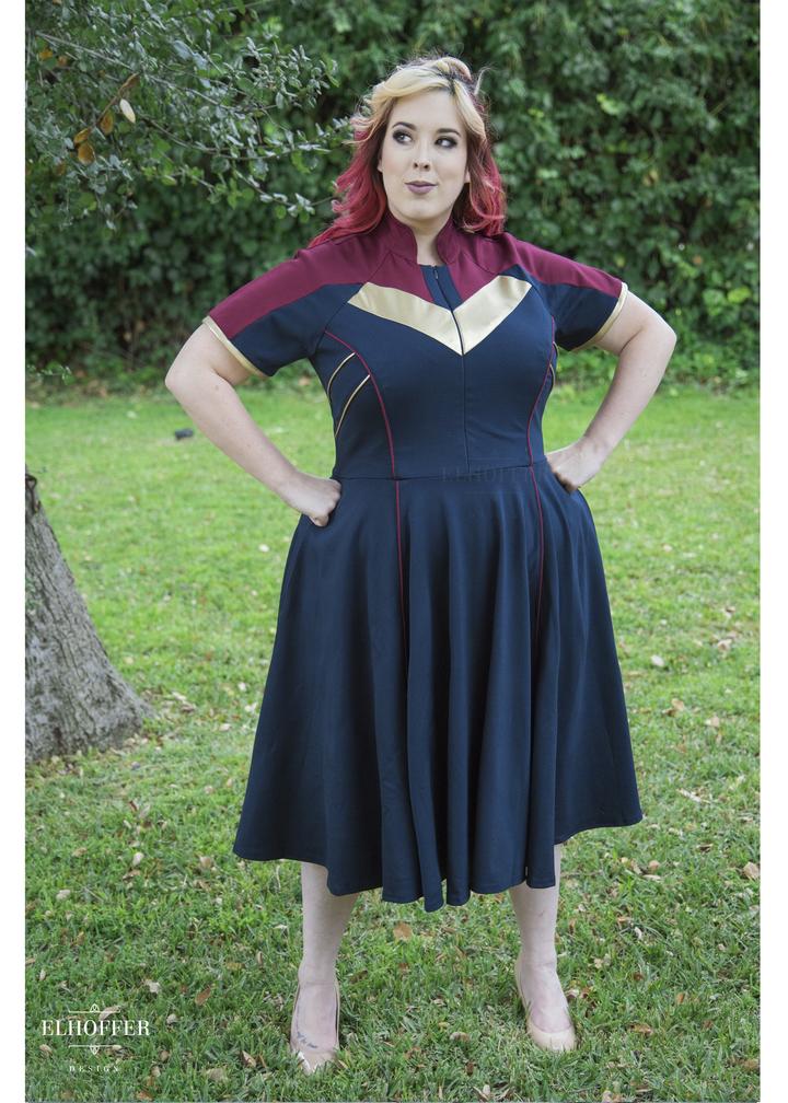 Made from Heavyweight Stretch Ponte (Rayon/Nylon/Spandex) with Stretch Vinyl Accents