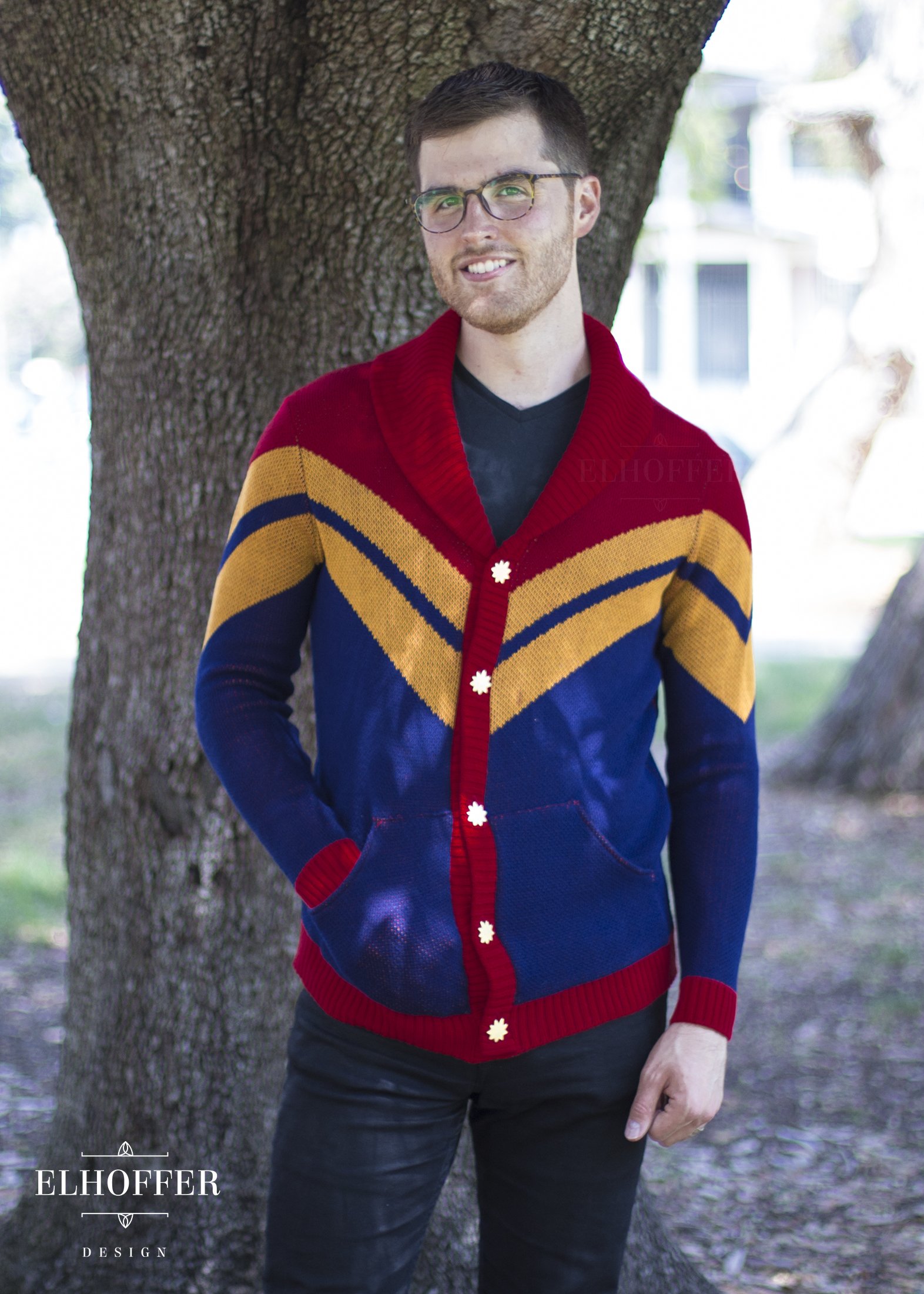 Available at: https://elhofferdesign.com/collections/heroes-and-villains-apparel/products/corps-shawl-cardigan
