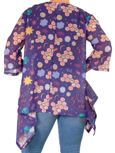 Based on a Heroicouture cardigan design that already happens to be a favorite of ours, this outerspace/gaming-themed kimono is a ton of fun to wear. It boasts a flattering cut, generous sleeves, and deliciously sheer fabric. The Galaxy Gamer Kimono is ideal for the space-obsessed gamer. It also works for gamers of all genders. Sandra noted that many of GameMaster’s male contestants chose it to wear on the show.