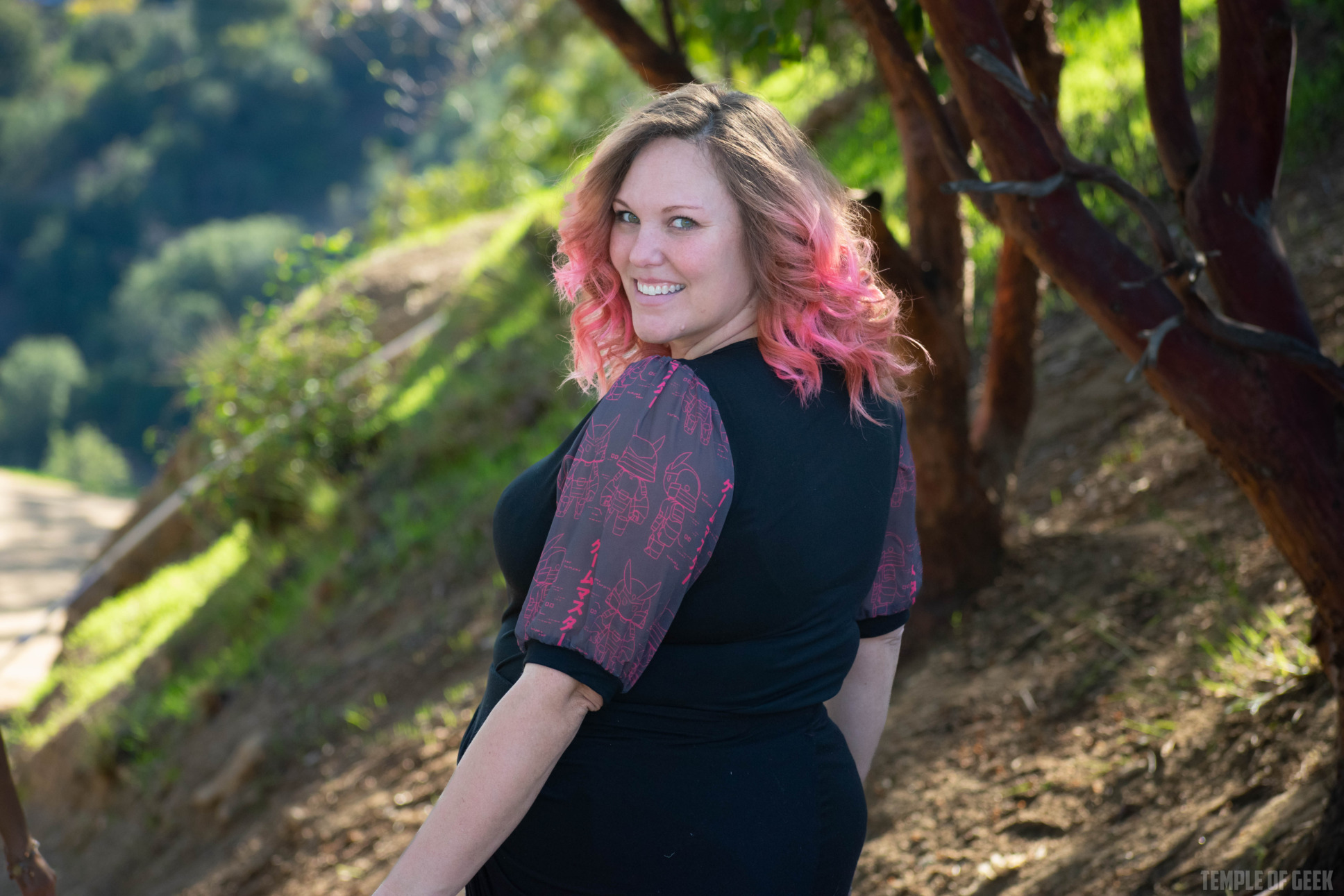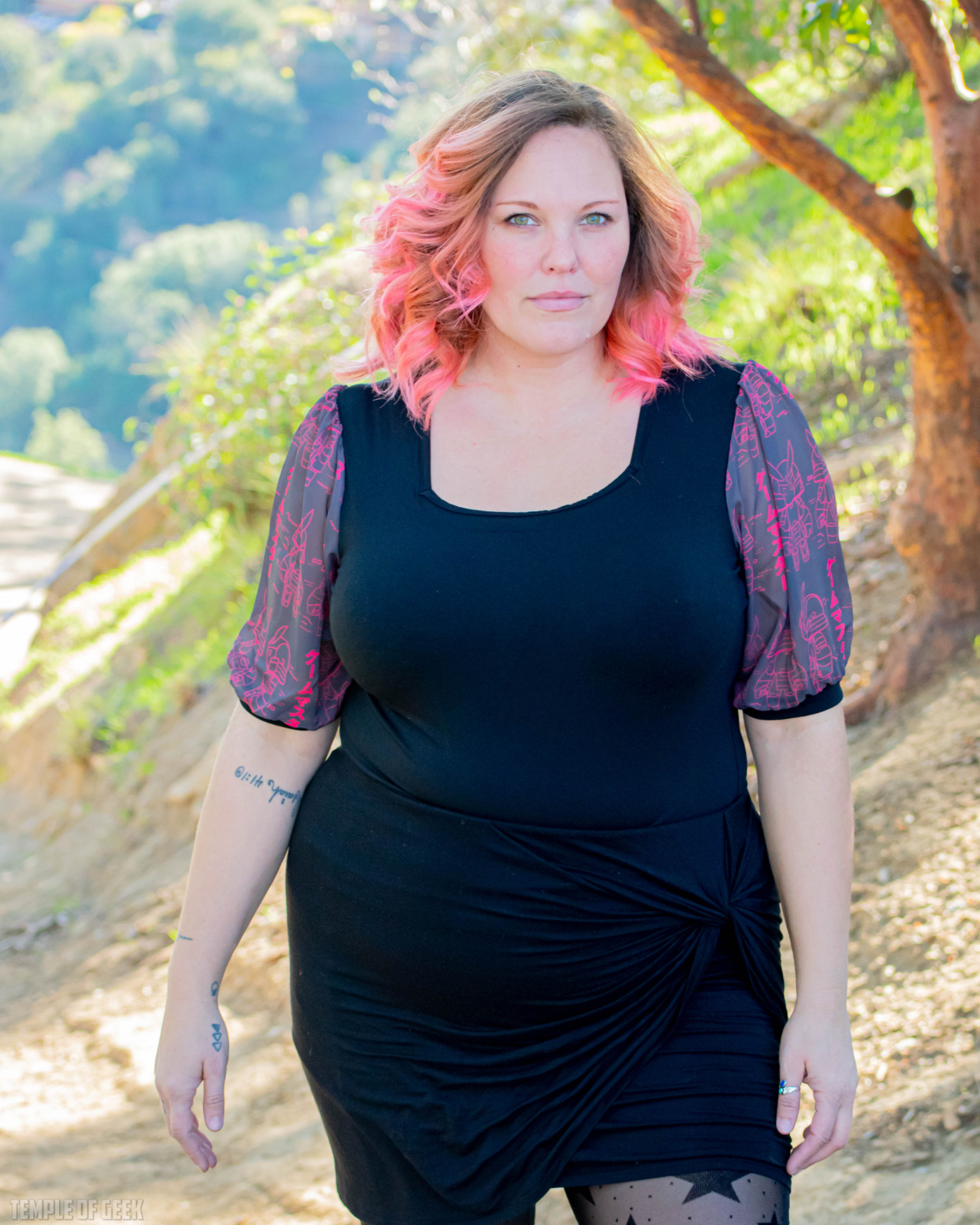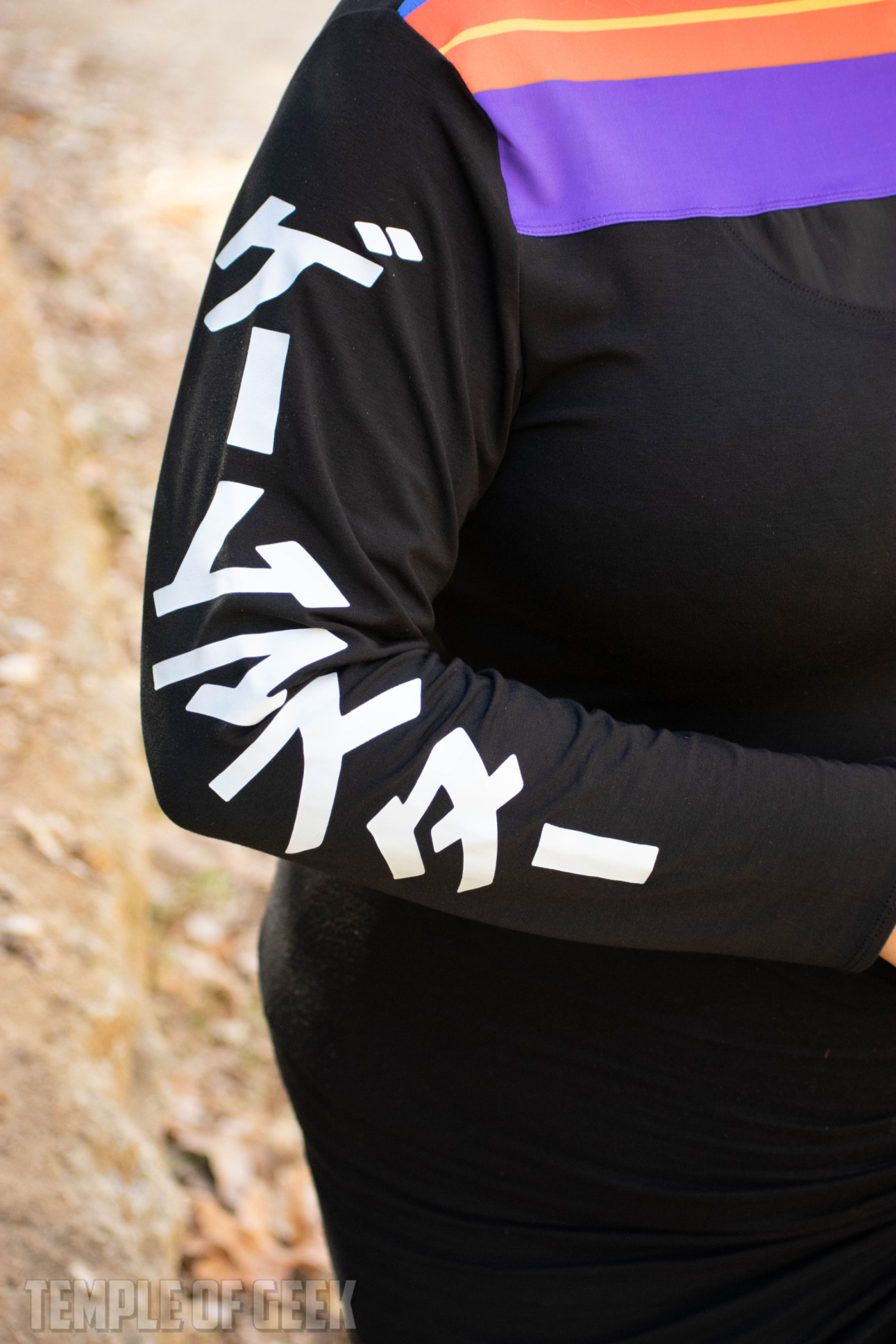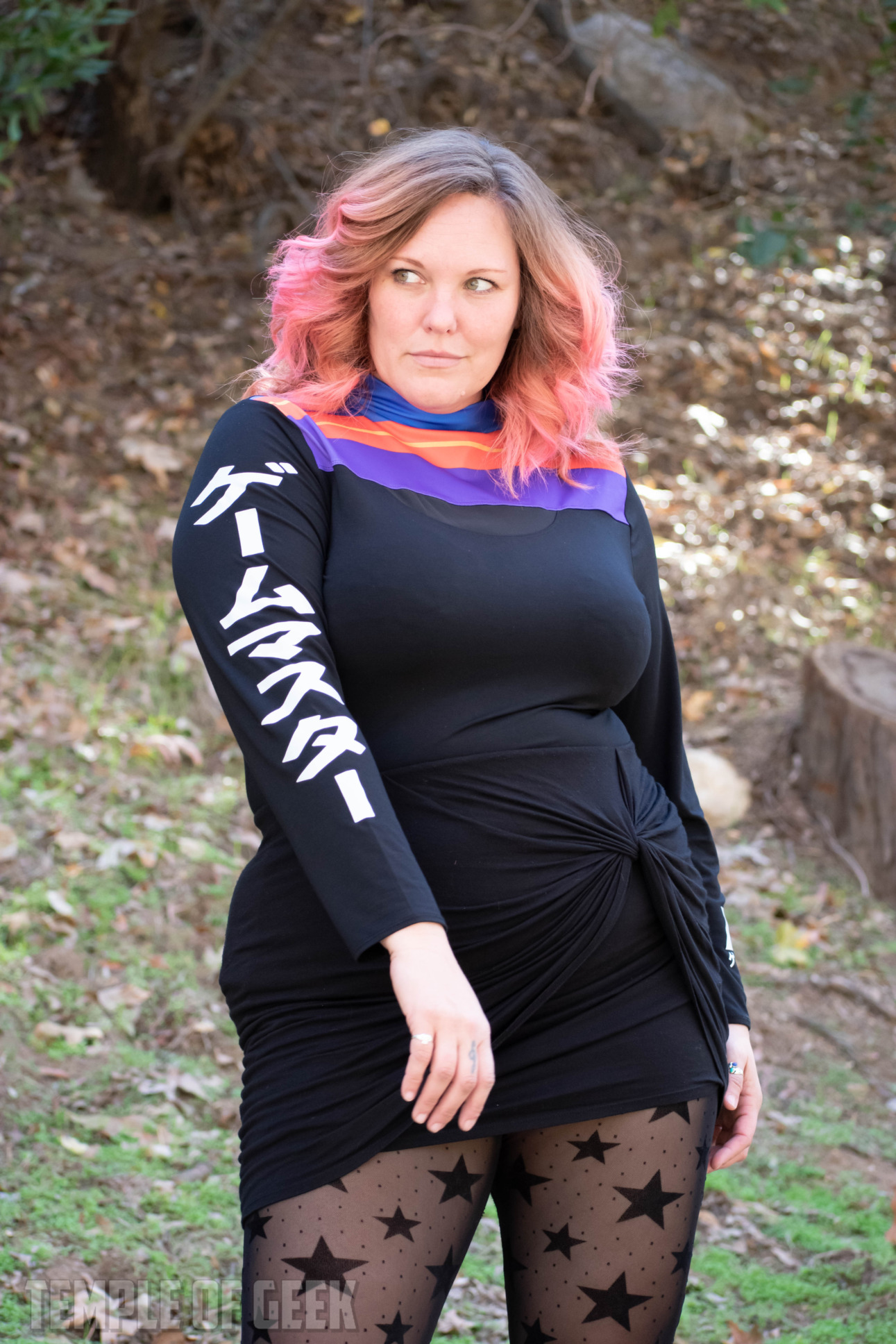 Temple of Geek Chic photographer Monica also tried on the shirt and found it to be “super comfortable.” “It’s fitted in a nice way,” she said, noting that the mock neck was “a little warm.”