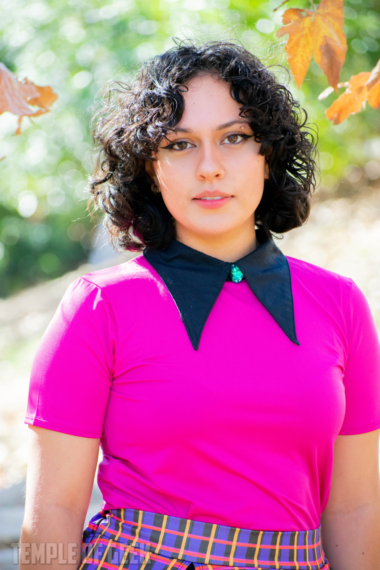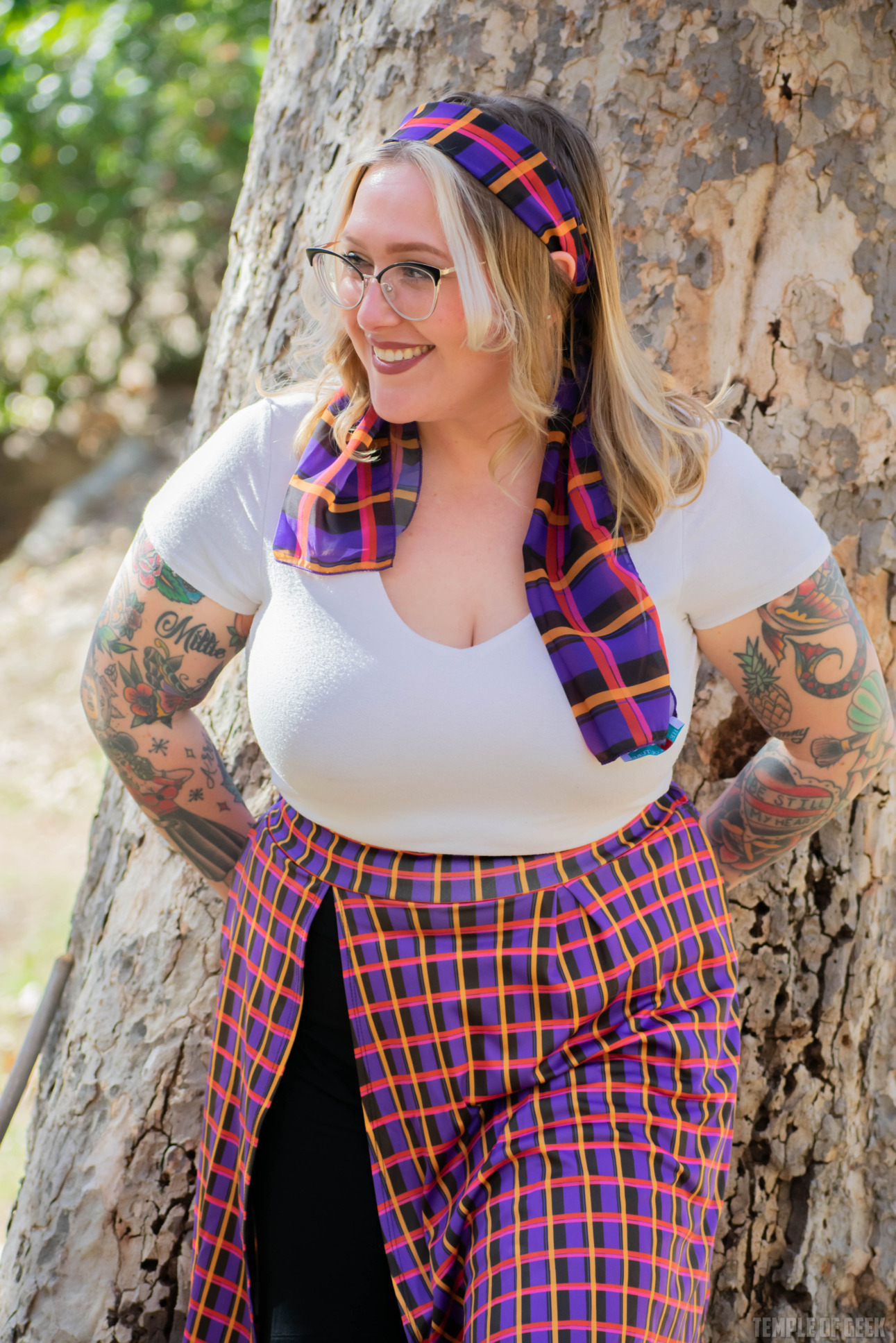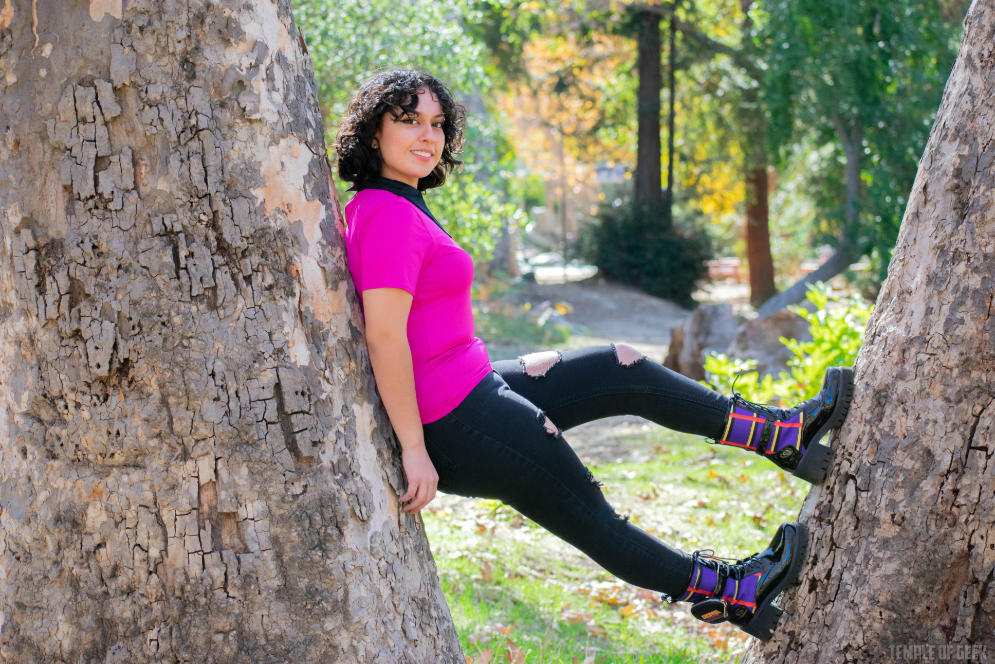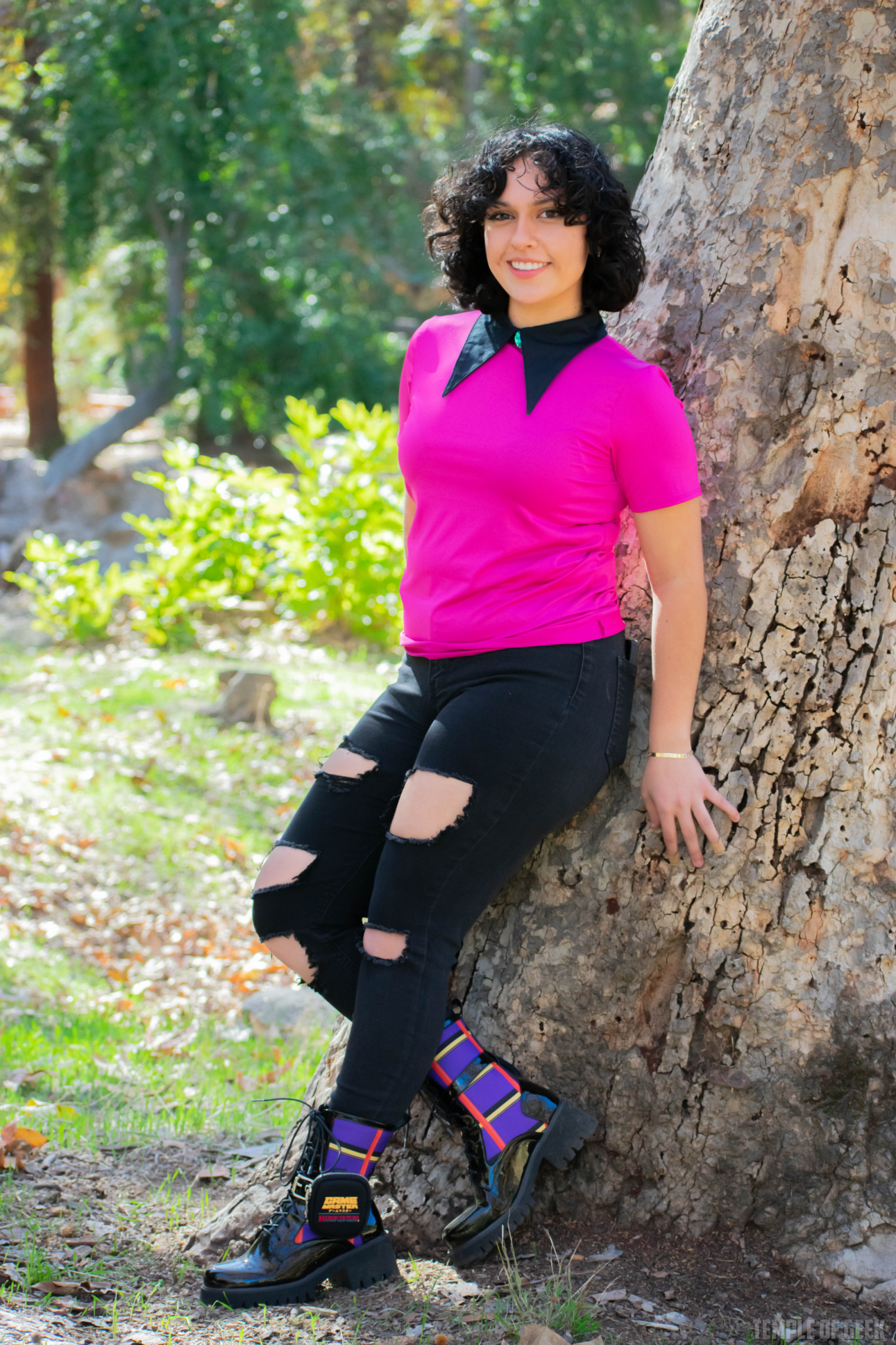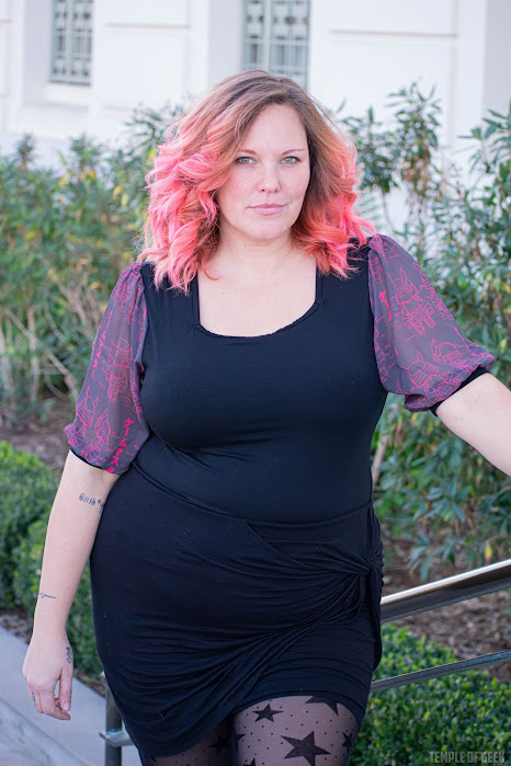 Temple of Geek Chic photographer Monica also tried on the shirt and found it to be “super comfortable.” “It’s fitted in a nice way,” she said, noting that the mock neck was “a little warm.”