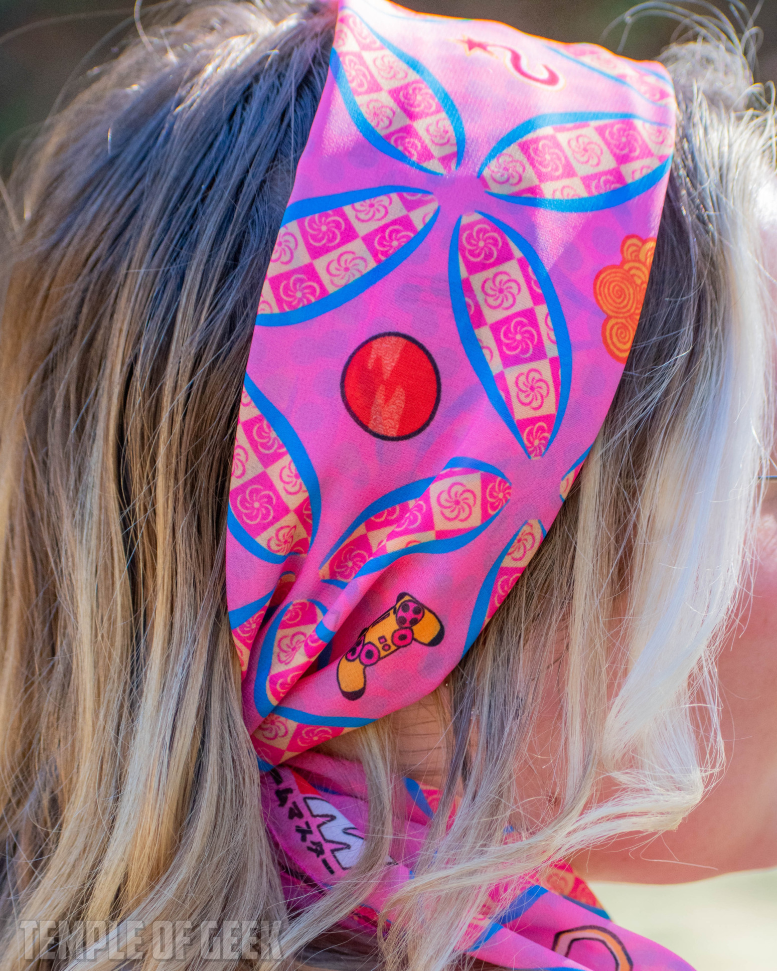 Featuring cute patterns and the bright GameMaster color palette, they’re silky-soft and easy to style. They’re just the right size for wearing in your hair or tying around the neck, wrist, or on a bag. The models spent quite a bit of time playing with them.