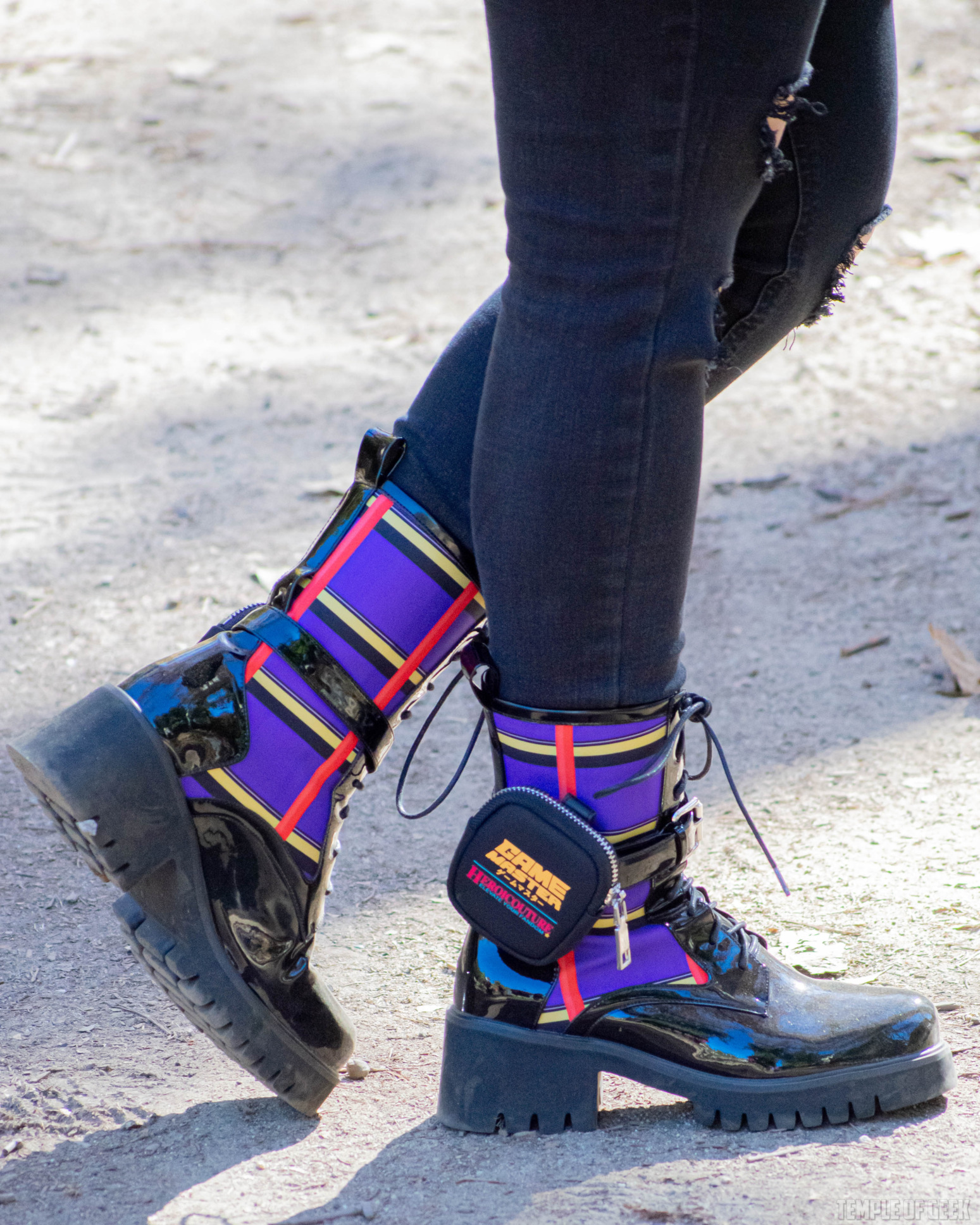 In keeping with her mission to create hands-free apparel, she added the “little pocket” on the boot as a place for gamers to stash their keys or other small necessities. “I (thought) it would be fun for the boot to have its own belt,” she said.