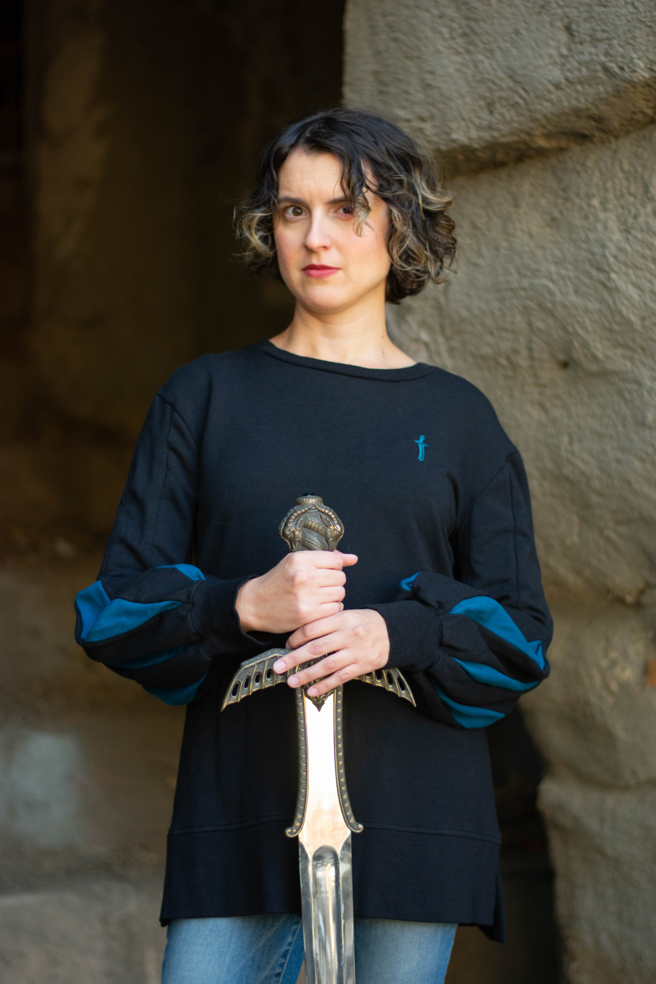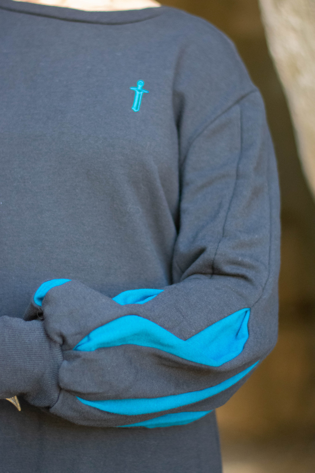While we love all the Guild Party pieces we tried during our shoot, the Fighter Shield Pullover was, by far, our favorite. This tunic-style top boasts a truly unforgettable design. We couldn’t stop raving about THOSE SLEEVES, but also how surprisingly soft and heavenly this sweater feels.