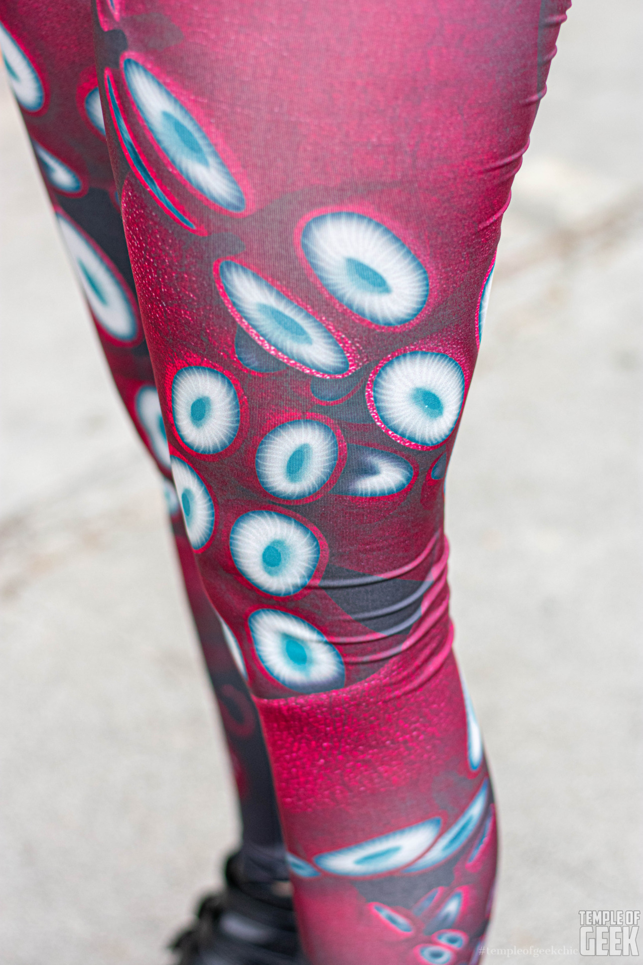 Release the Kraken! If you’re planning a pirate-themed Halloween costume, then these crimson leggings would make an unexpected addition to your outfit. Wrapped in a coiling tentacle pattern, they are probably the creepiest of the three designs we sampled. They give off major octopus/sea monster/giant squid/seafaring vibes.