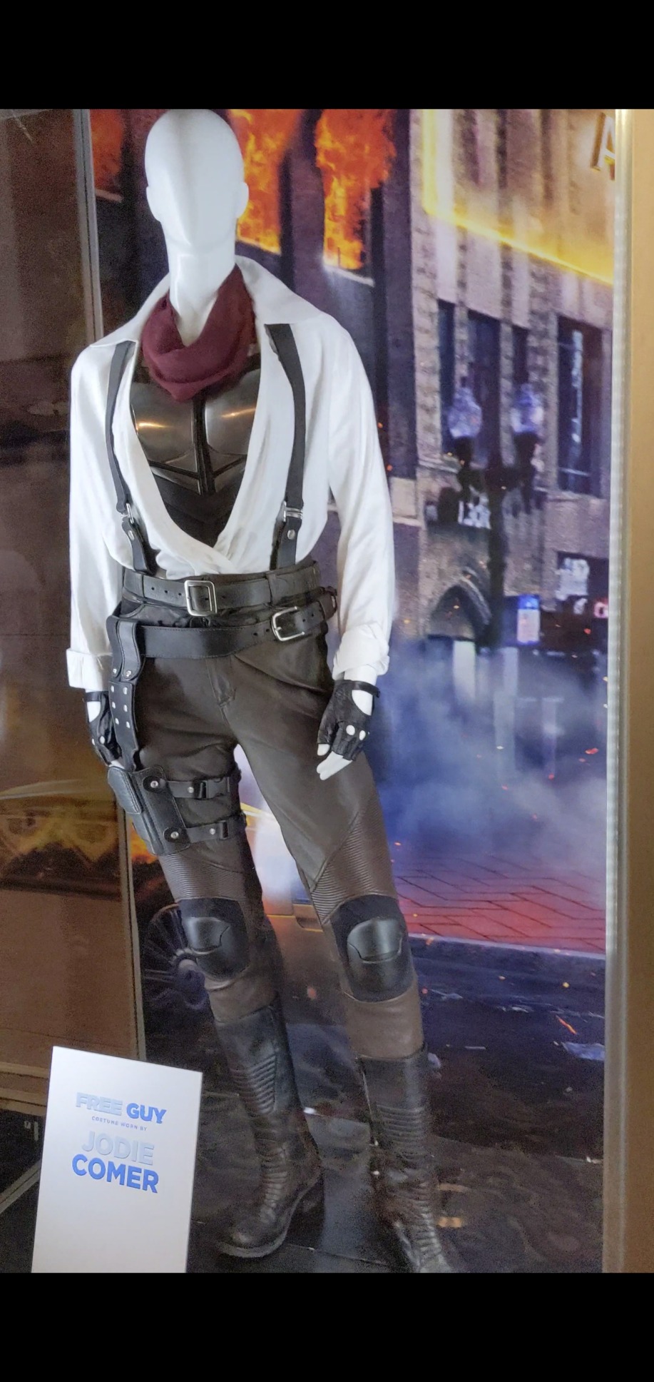 There are plenty of chest protectors available online, But the majority will most likely look bulky and may not have the same design that appears in Milly’s costume. Keep in mind that movie costumes are intended to look good and not necessarily be functional. This may be something that you can DIY. Creating foam armor is a practical way to create this look. Painting over fabric is also an option.