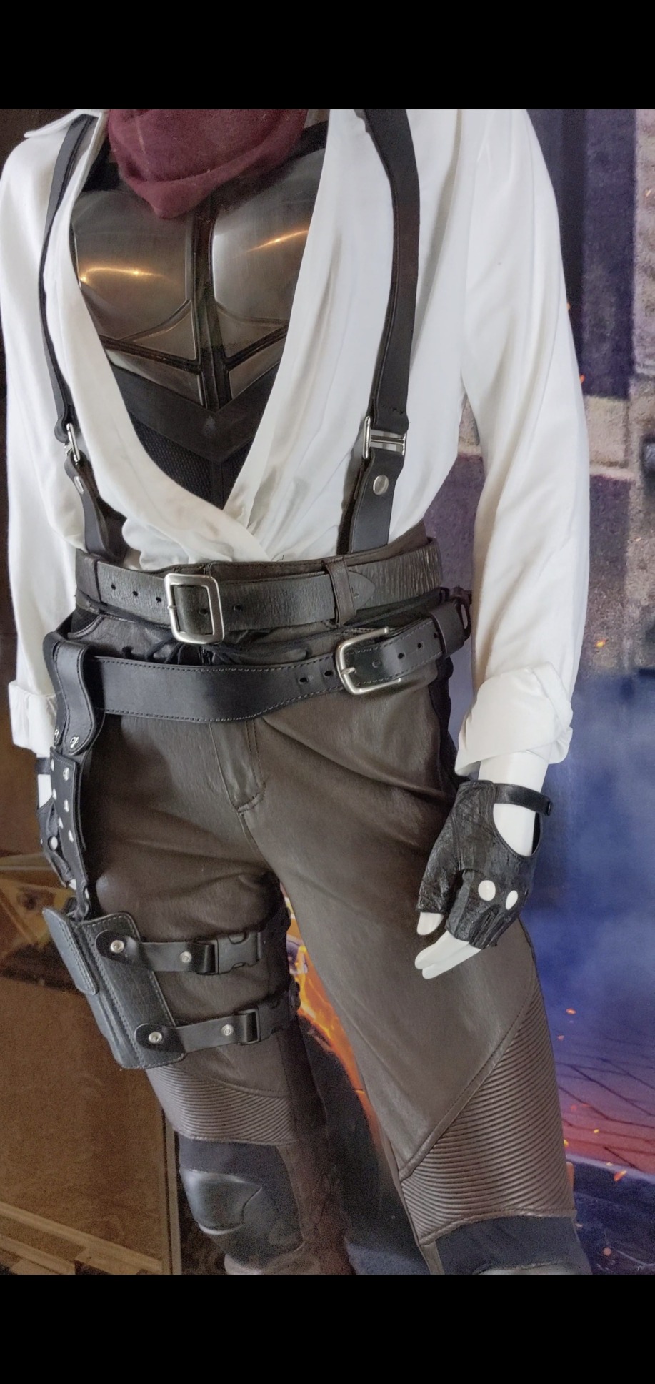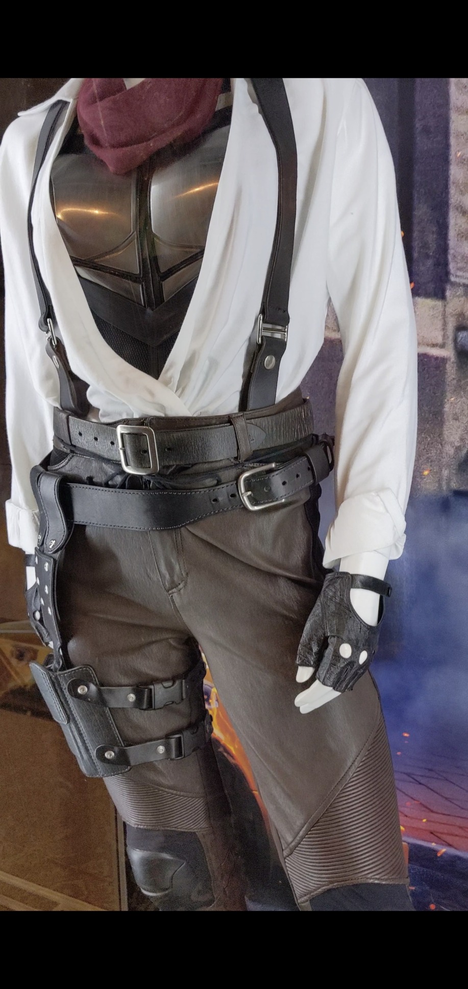 The gun holster is something you can find on several cosplay sites as well as functional ones at Military surplus stores. But the functional holsters won’t look like the ones worn in the film. You are safer purchasing a costume leg gun holster.