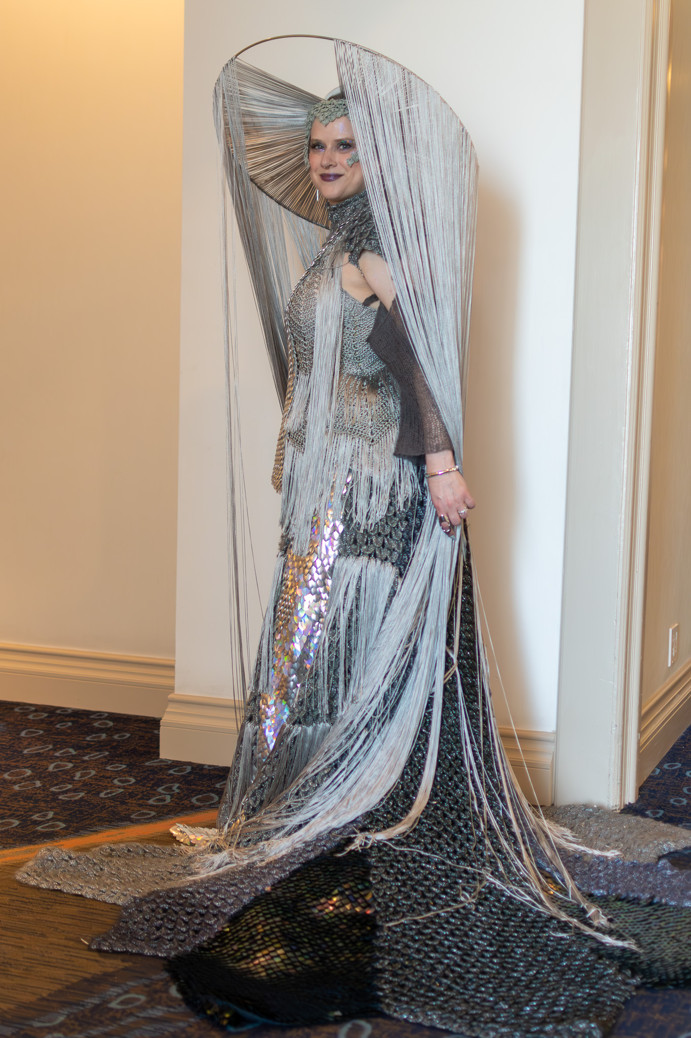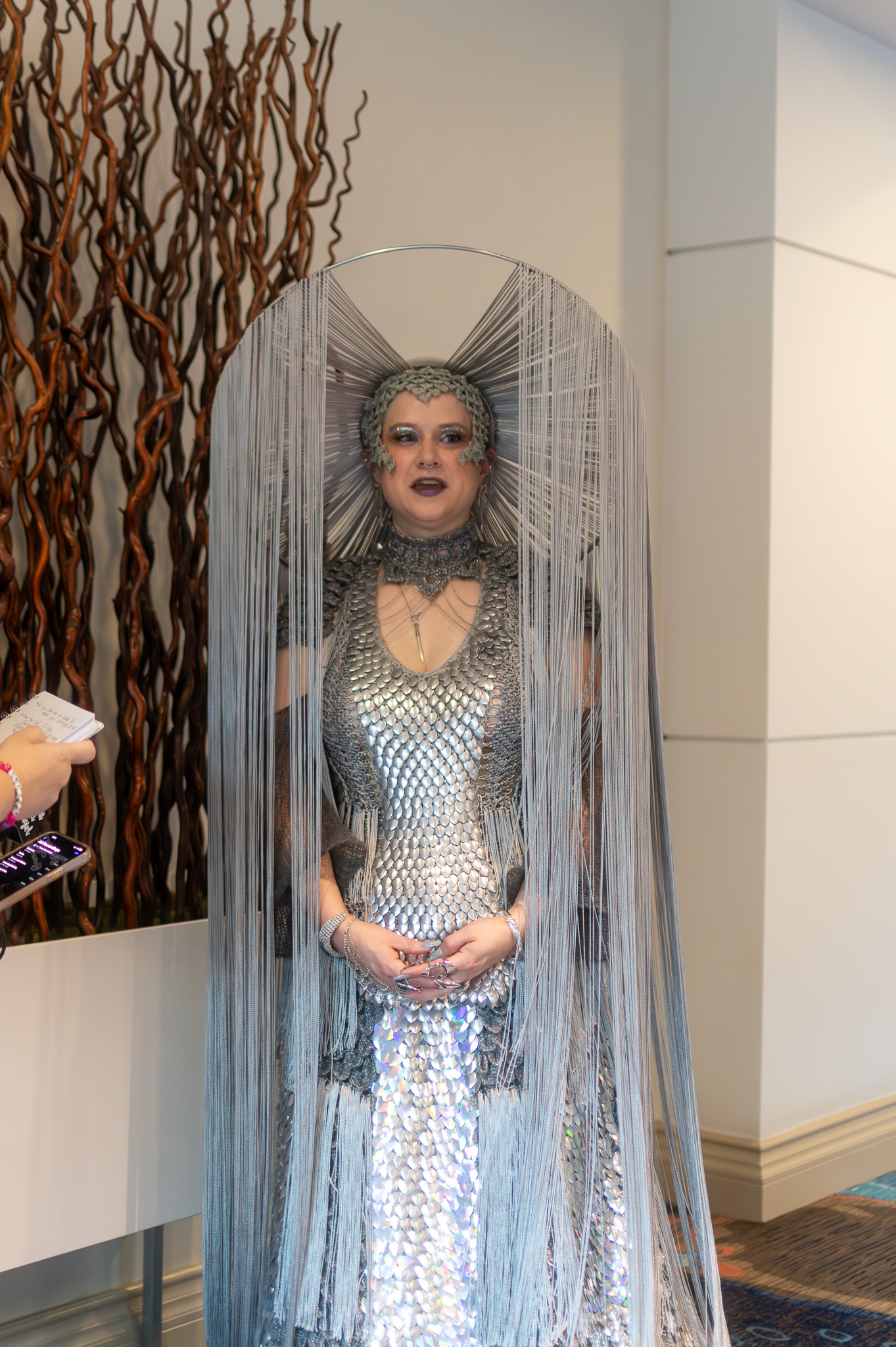 When asked about the materials and techniques used in the design, Miller explained that the armor was created using knitted scale mail, while the yarn fur was crocheted using a crocodile stitch. The headpiece, a striking accessory, was crafted using macrame, a form of knotting. Miller’s dedication to her craft is evident in the intricate details of the design. For example, it took approximately 154 hours to complete.