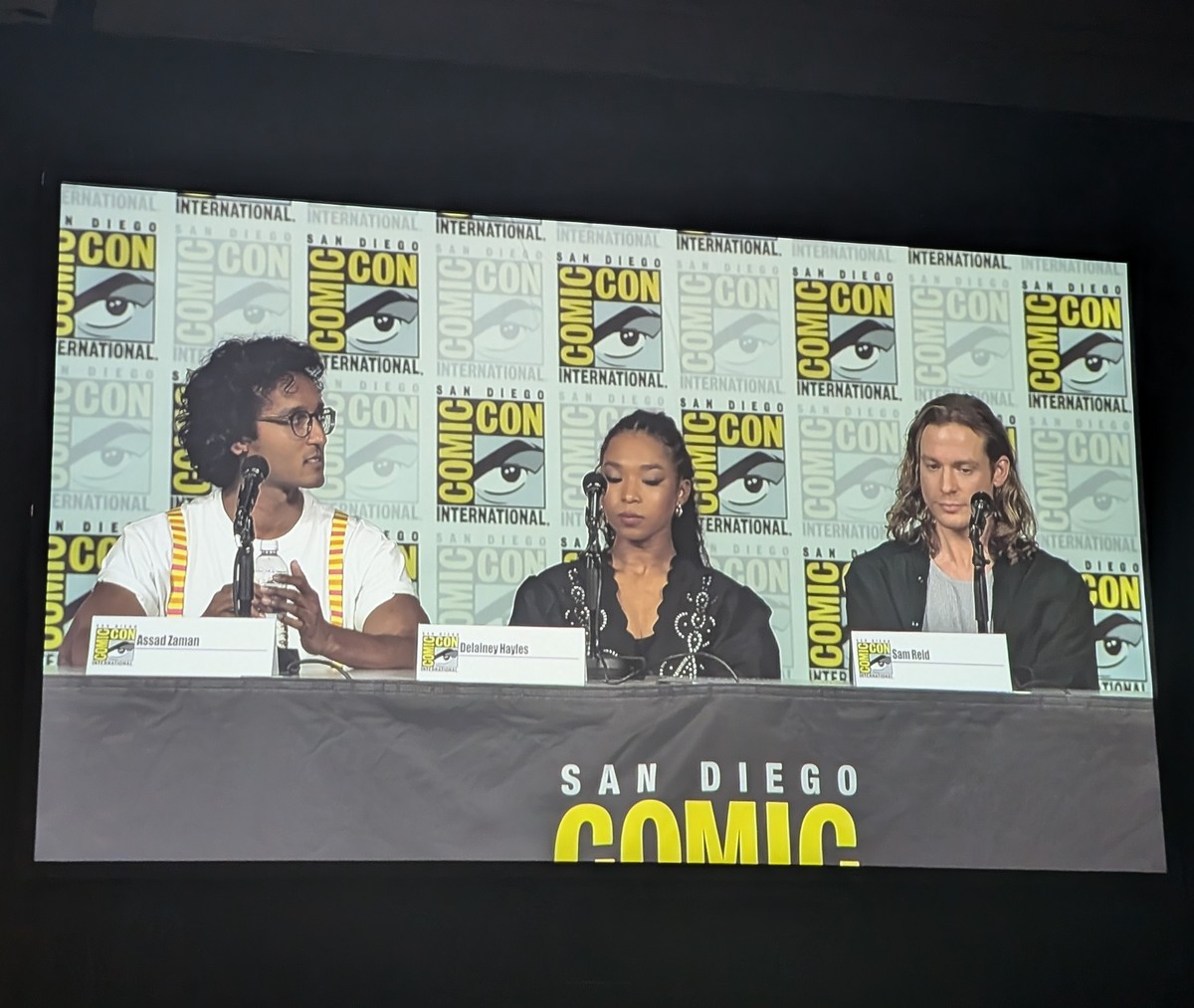 The panel begins with Holbrook introducing the guests on the panel: Mark Johnson (Anne Rice Universe executive producer), Rolin Jones (Interview showrunner and executive producer), Sam Reid (“Lestat”), Delainey Hayles (“Claudia”), Assad Zaman (“Armad”), Daniel Hart (composer), and Mara LePere-Schloop (production designer). With some guests missing, Holbrook announces that Anderson and Bogosian could not make it, However, they left the panel with heartwarming video messages which were displayed on screen.
