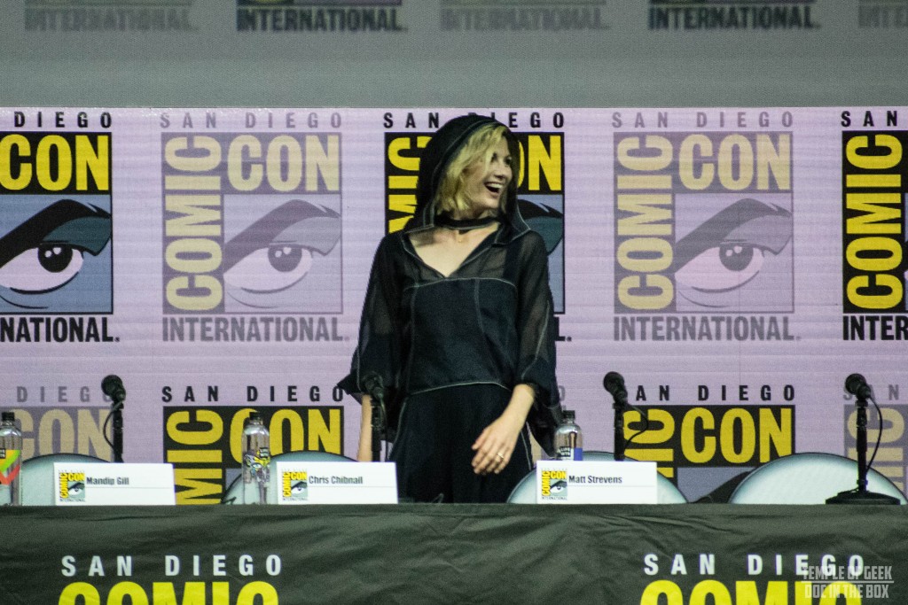 In the middle of the panel, they played the trailer, to the delight of the audience. What a ride we are in for! The little speech the Doctor gives is engaging. The clips from the episodes looked great, with the new places and people the Doctor will be encountering. There was one scene where they appear to be riding horses. Hopefully, Jodie’s horsemanship skills are a step above Matt Smith’s!