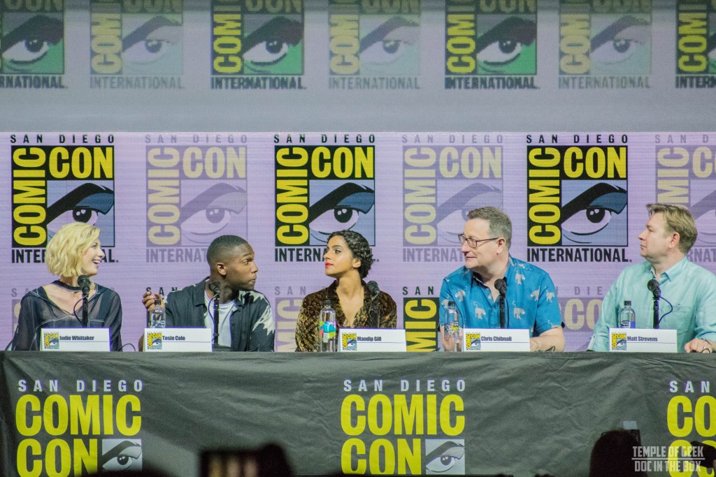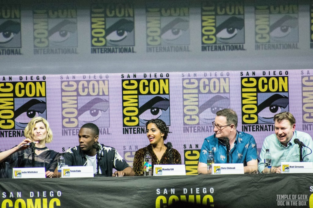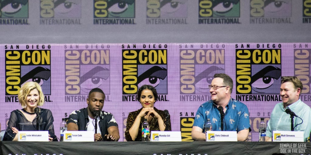 On July 19th, Whovians packed Hall H at San Diego Comic Con for an experience of a lifetime, the Doctor Who panel with the Doctor herself, Jodie Whittaker, two of her new companions Ryan (played by Tosin Cole) and Yasmin (played by Mandip Gill), new show runner Chris Chibnall, and new Executive Producer Matt Strevens. For those of us who were not fortunate enough to make it to Comic Con this year, the BBC graciously uploaded the entire panel onto their YouTube channel two days later.