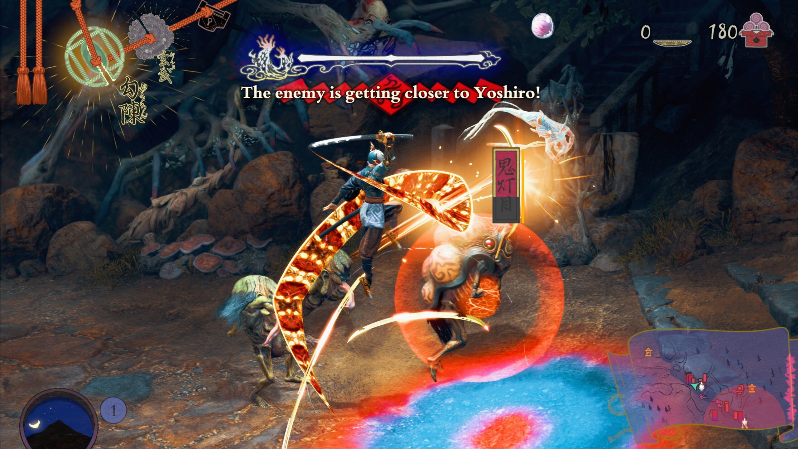 At night is when the fighting begins. Once night falls, the corrupted Torii gates open, allowing Seethe to pour through and try to attack Yoshiro. This is where the tower defense elements come into play. At night, Yoshiro doesn’t move, so it’s up to Soh and the villagers to keep her safe. You do this by either fighting them yourself as Soh or relying on your villagers to attack and defend.