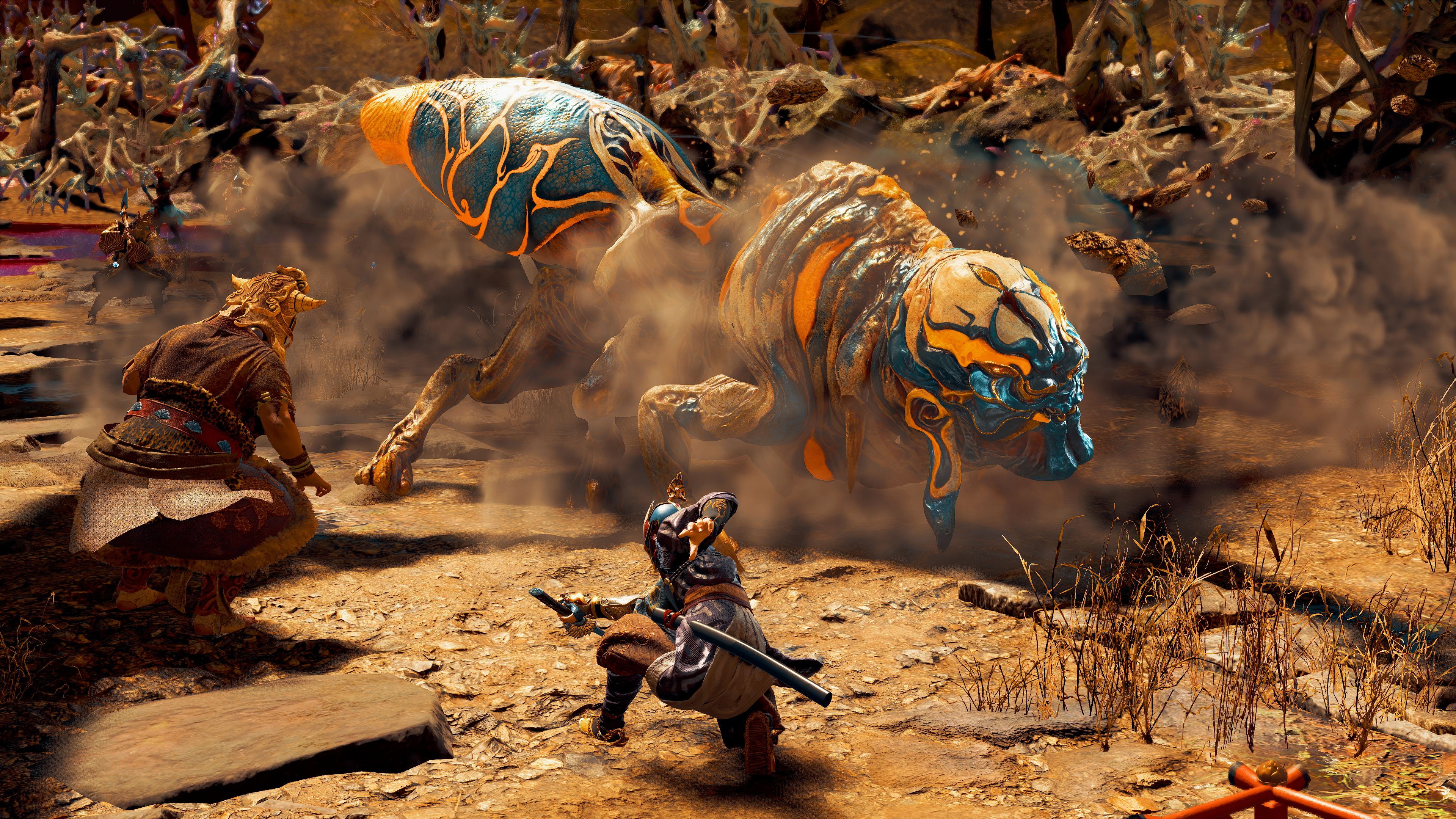 The game’s performance is unimpressive at times, with pop-ins and screen tearing occurring frequently after coming out of a loading screen. Other than that, the environments are beautiful and the Seethe designs are brilliantly grotesque. Taking inspiration from traditional Japanese Yōkai, the Seethe sport a wide variety of different looks, with the bosses taking the cake for the most impressive designs. The Japanese-influenced art style and aesthetic are one of the game’s biggest strengths: the environments are even hand-crafted as miniatures before being rendered digitally! More on that here.