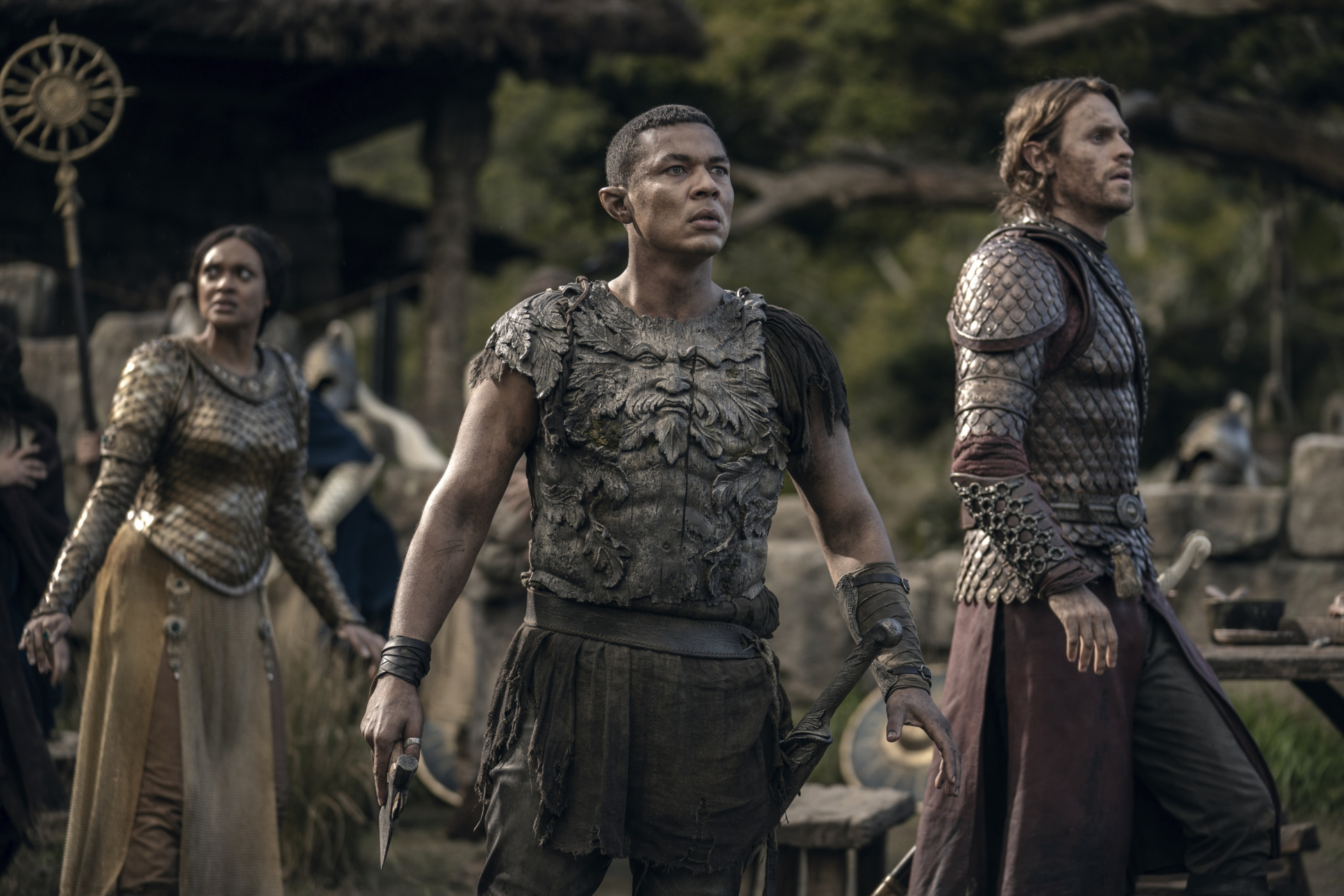 Cynthia Addai-Robinson (Queen Regent Míriel), Ismael Cruz Córdova (Arondir), Charlie Vickers (Halbrand)