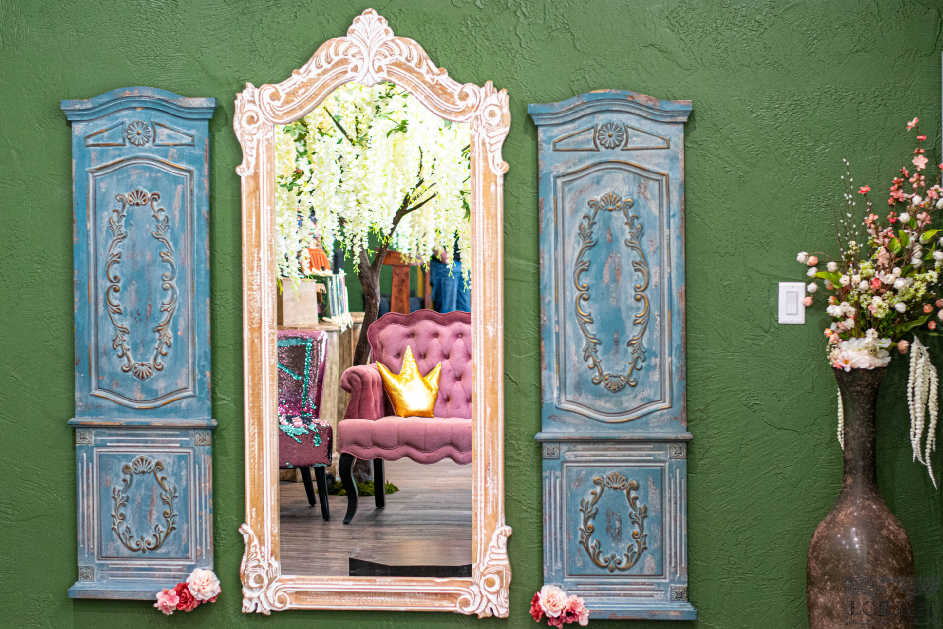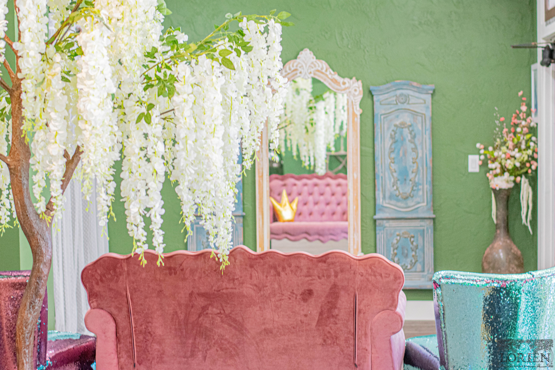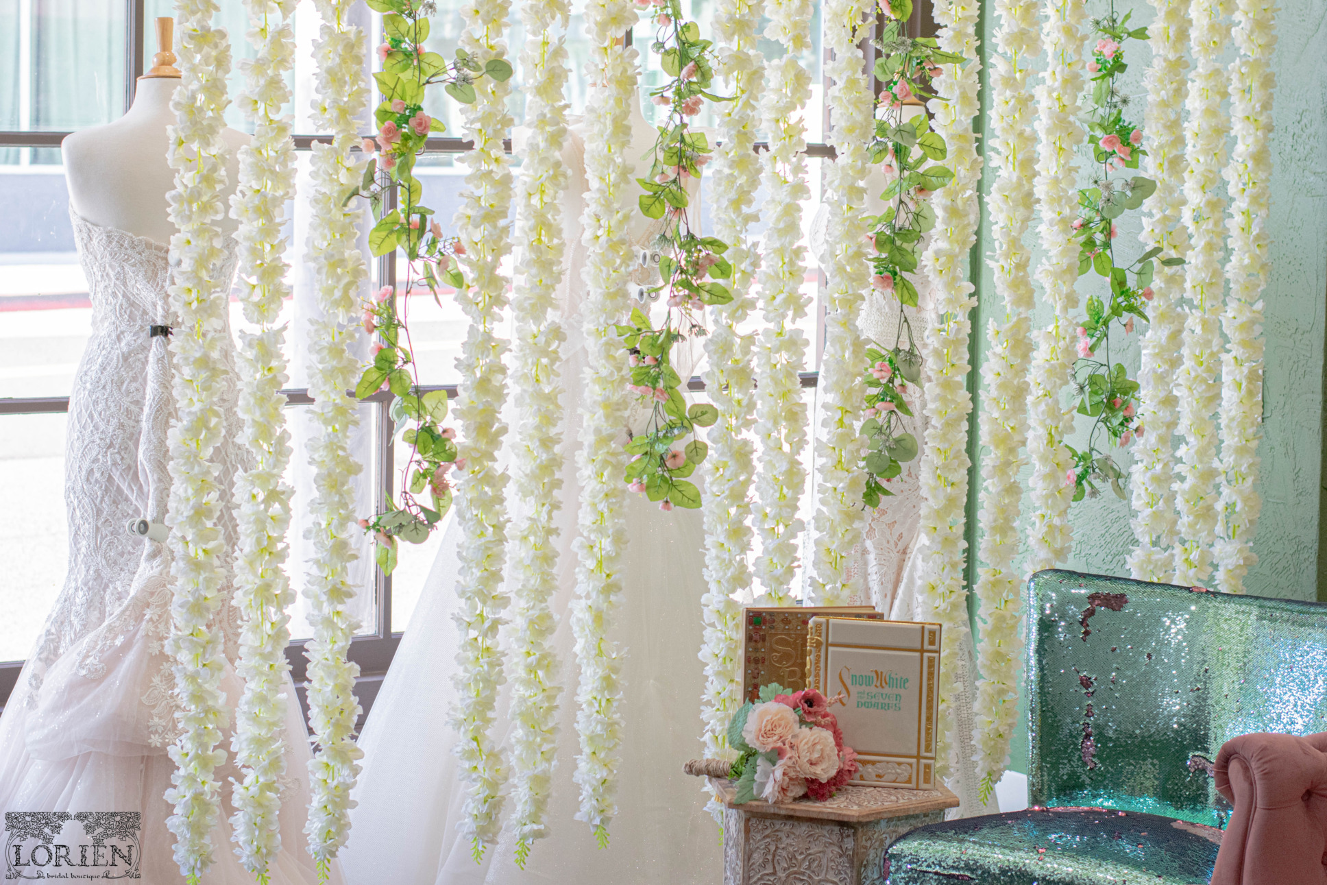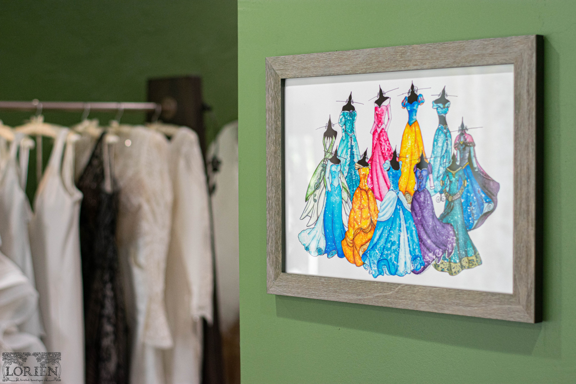 Are you going for that Disney Princess vibe? Well, this dressing area will make you feel like Royalty! The love for gowns, Disney, and dreams coming true is too real! There is a feeling of whimsy present throughout the shop, but this corner is absolutely magical!