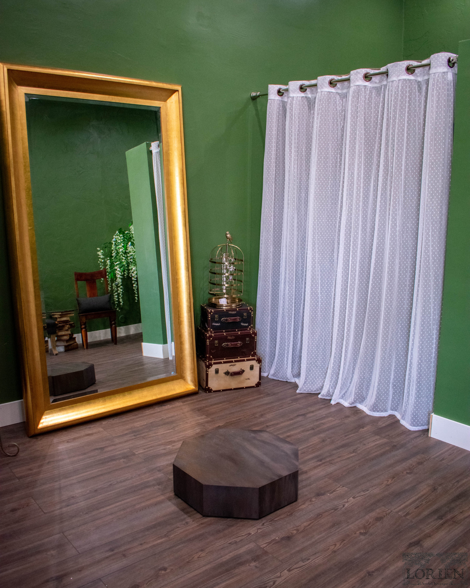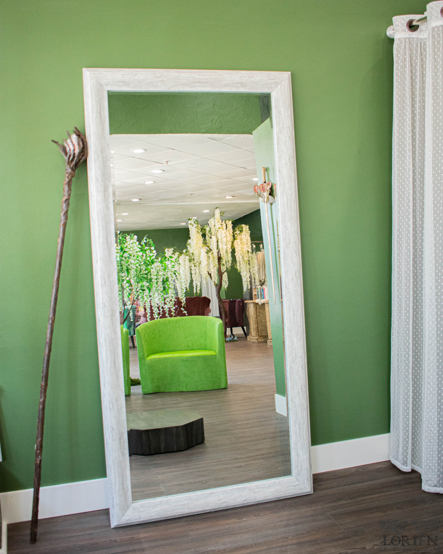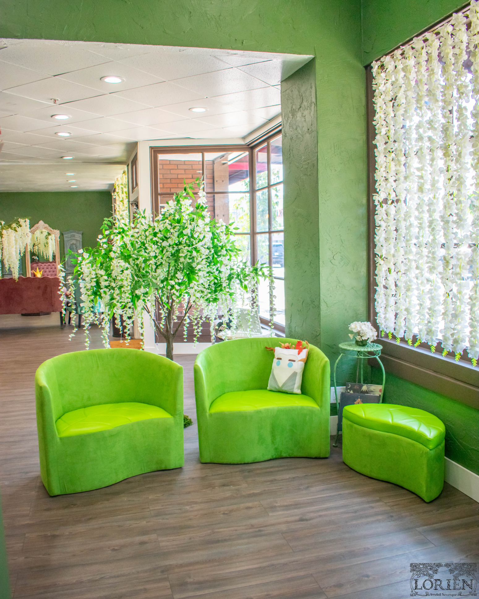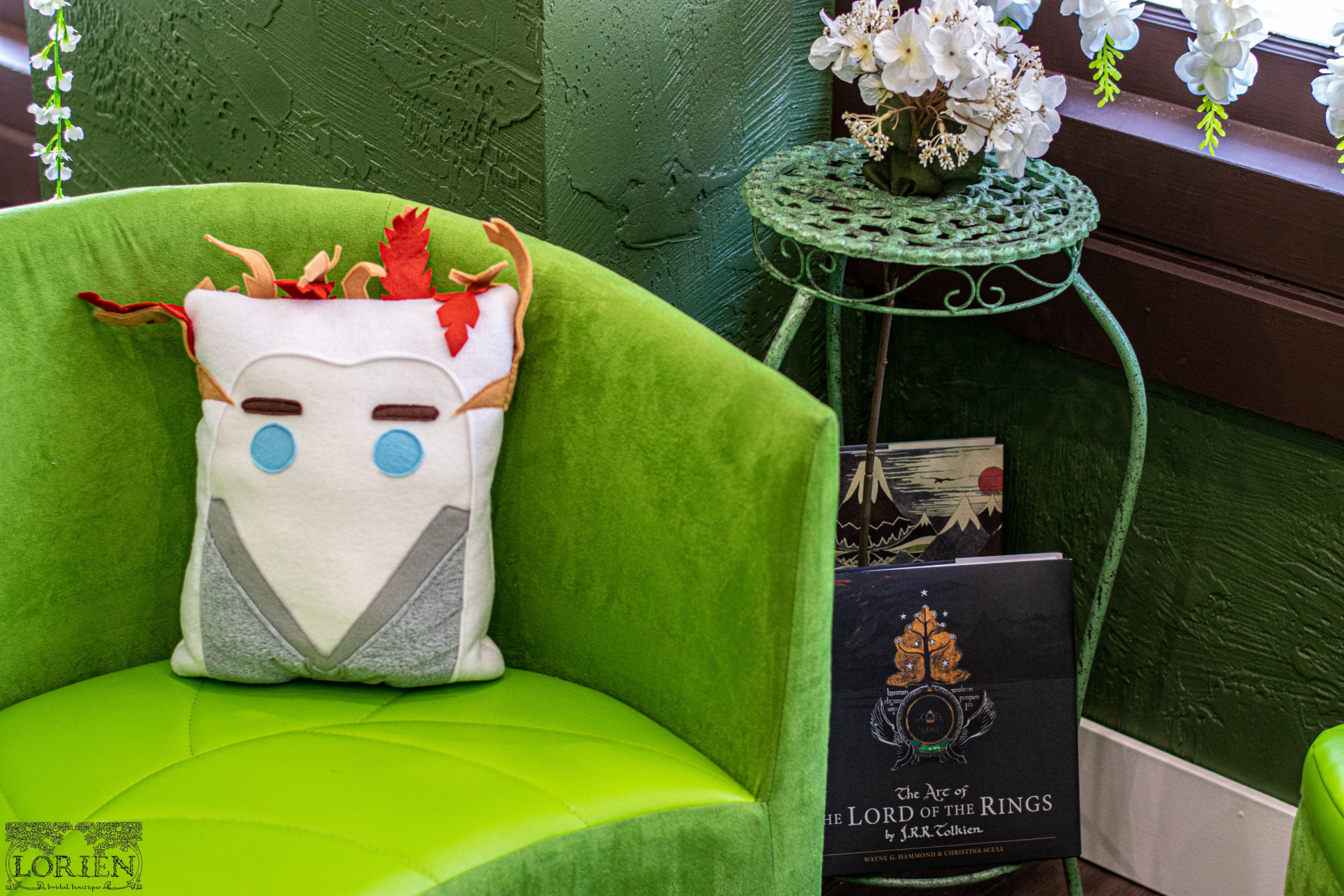 Walking into Lorien Bridal is like walking around an enchanted forest. Each area is inspired by a different mythical forest. There are plenty of nods to Lord of the Rings. As you walk into the shop a floor mat that reads “Speak Friend and Enter” greets you. The cardholder at the register is Tree Beard and even the name of the boutique is inspired by Lord of The Rings culture.