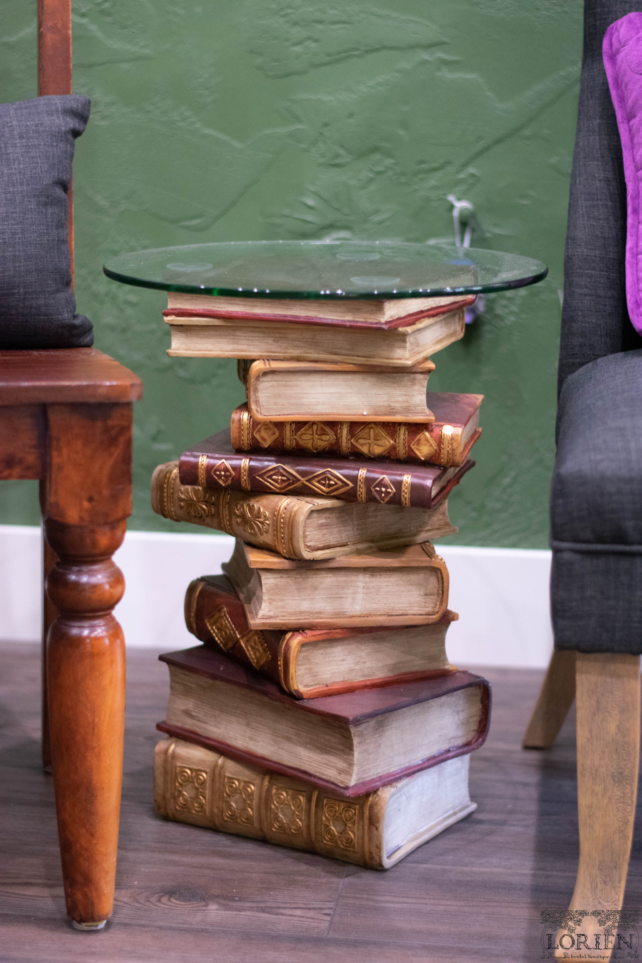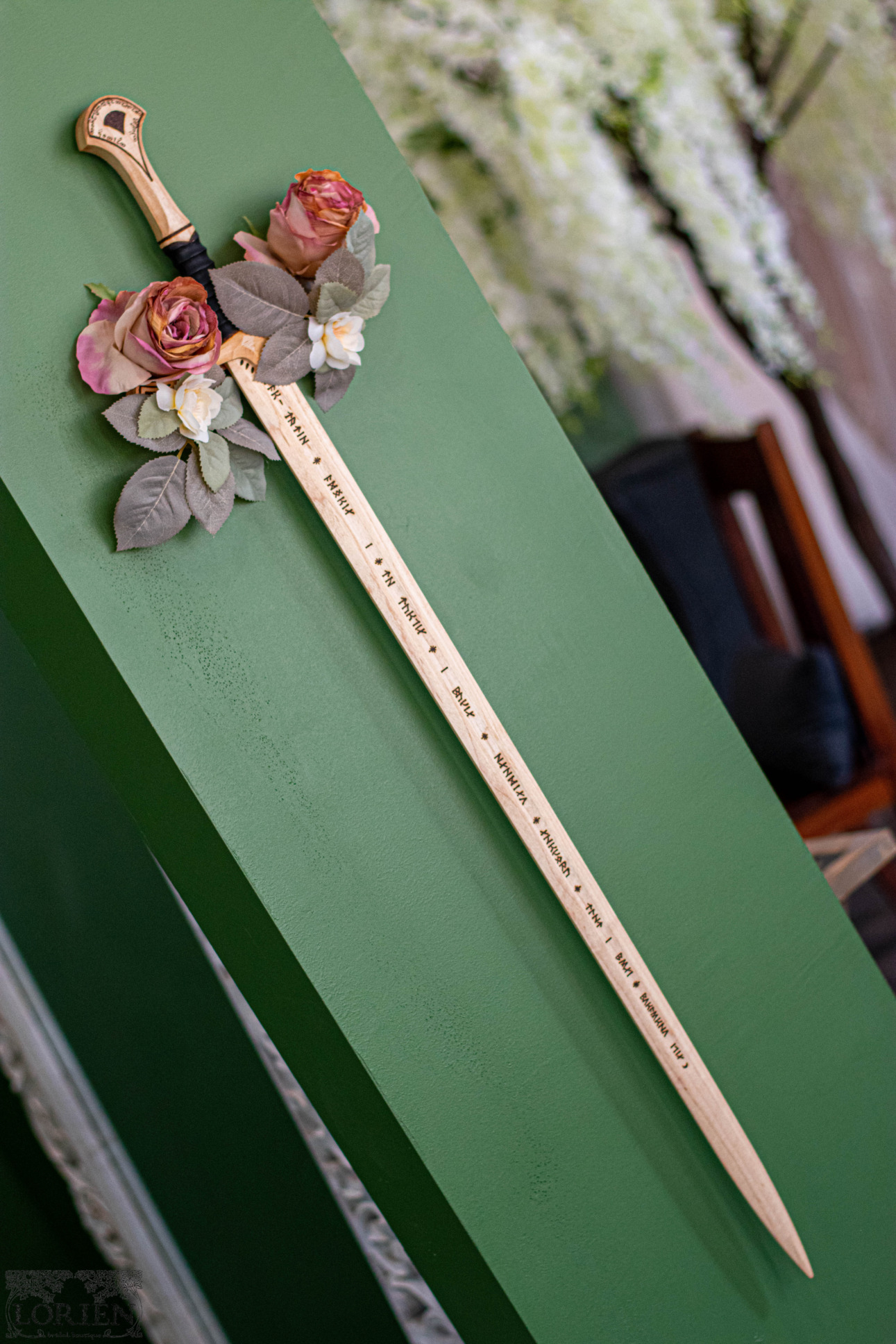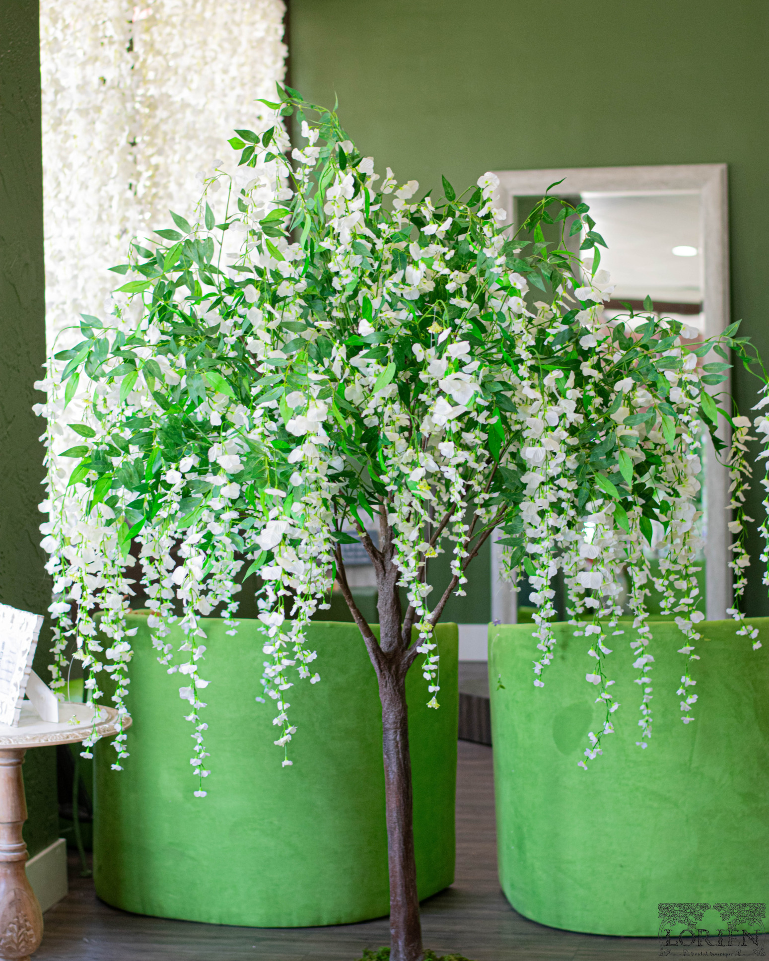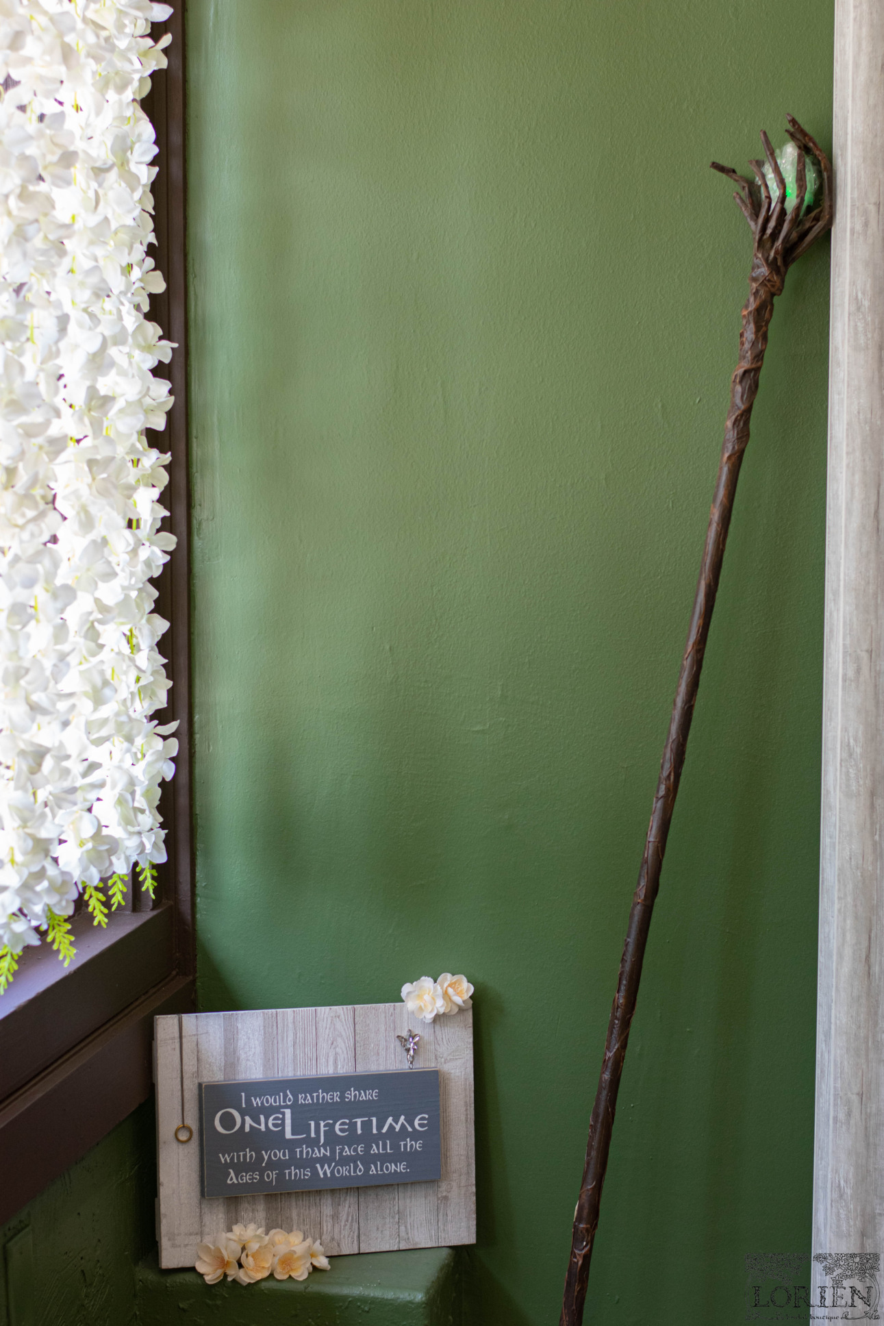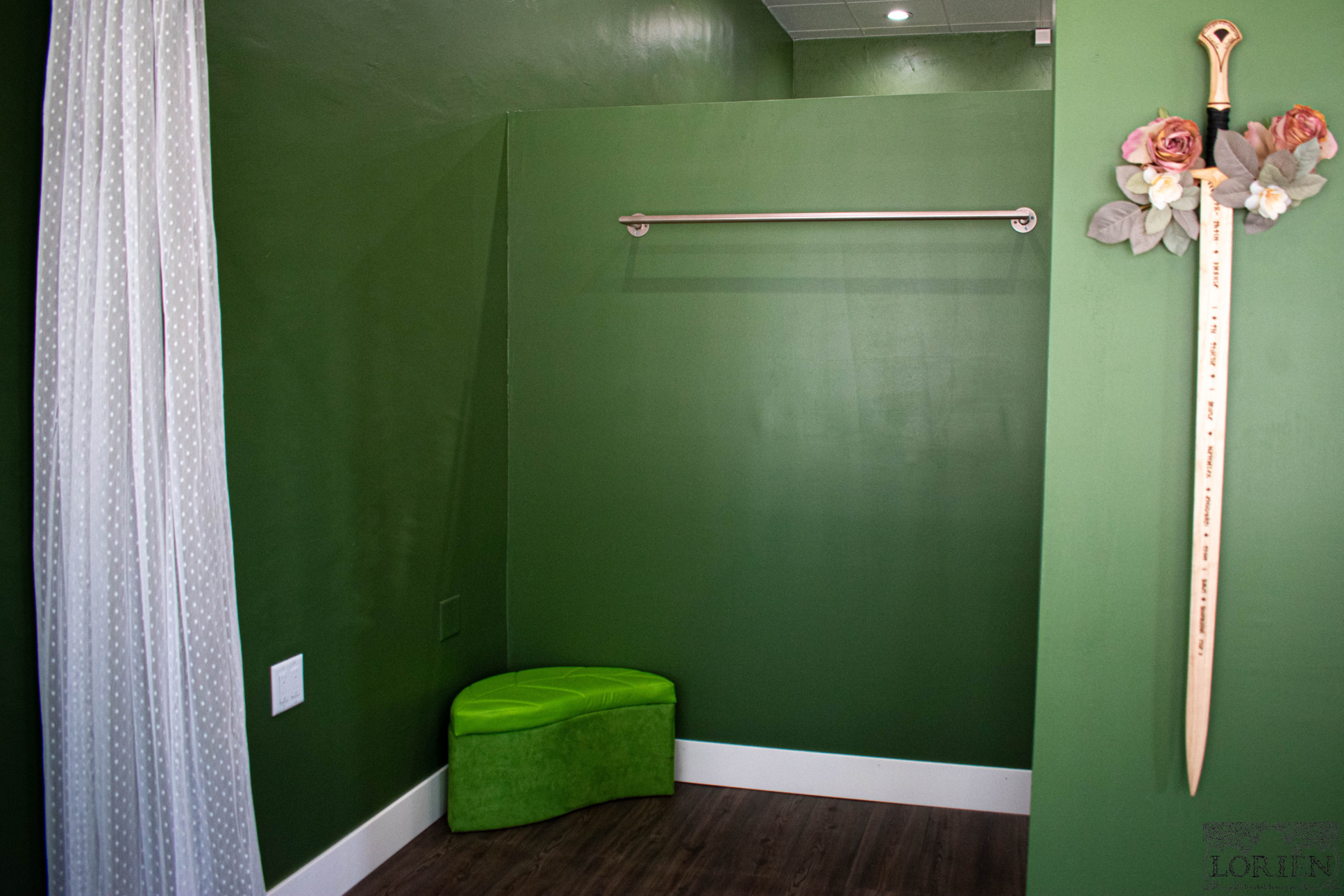 Walking into Lorien Bridal is like walking around an enchanted forest. Each area is inspired by a different mythical forest. There are plenty of nods to Lord of the Rings. As you walk into the shop a floor mat that reads “Speak Friend and Enter” greets you. The cardholder at the register is Tree Beard and even the name of the boutique is inspired by Lord of The Rings culture.