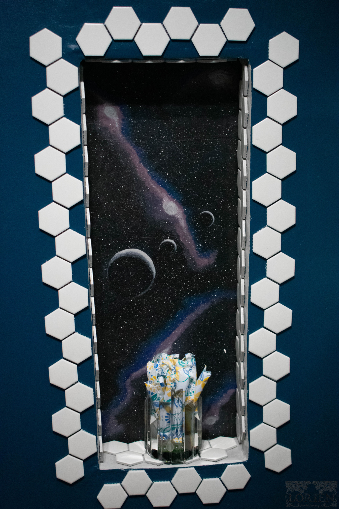 No space is wasted in this Bridal Boutique. Amanda has designed clever and fun areas to indulge all sorts of fandoms! This is the perfect shop for a book worm, geeky bride, or fantasy enthusiast.