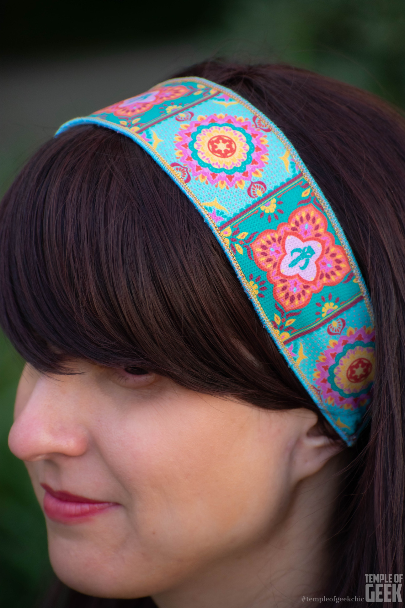 Maddie also tried out the Star Tiles Headband, which features another colorful, surprising Star Wars-inspired print. The headband is reversible with elastic on the end for a flexible fit. It’s made of 100% cotton woven fabric and hand sewn.