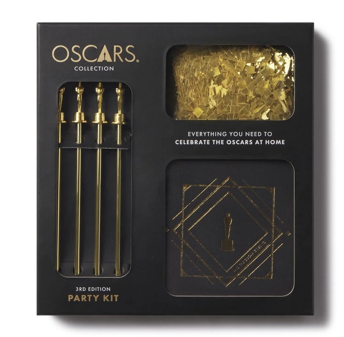 The Official Oscars® Viewing Party Kit allows you to feel like you’re there with the stars during your watch party! It includes an Oscars® banner, gold confetti, one set of 20 napkins, and four metal drink stirrers for you to celebrate in style.