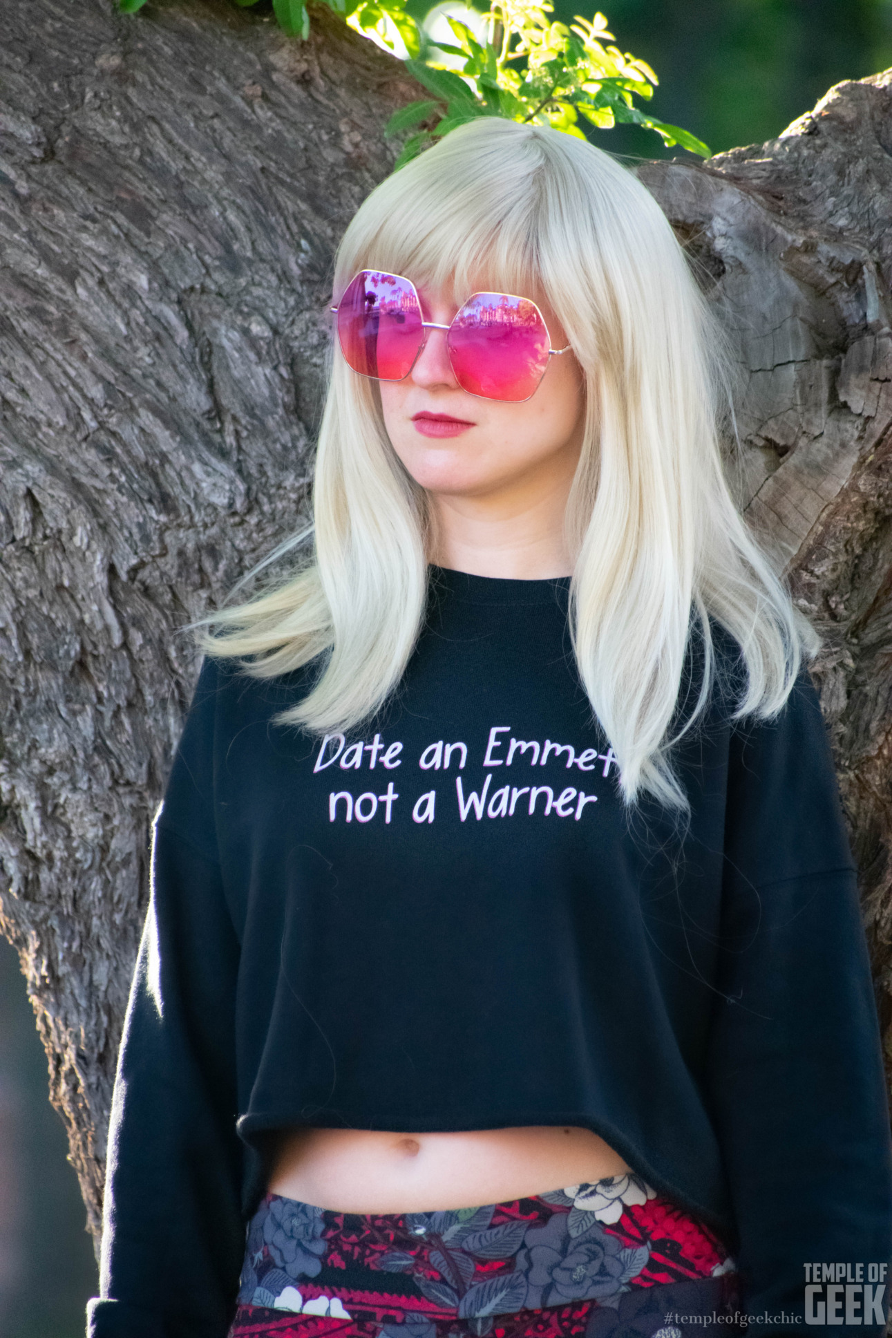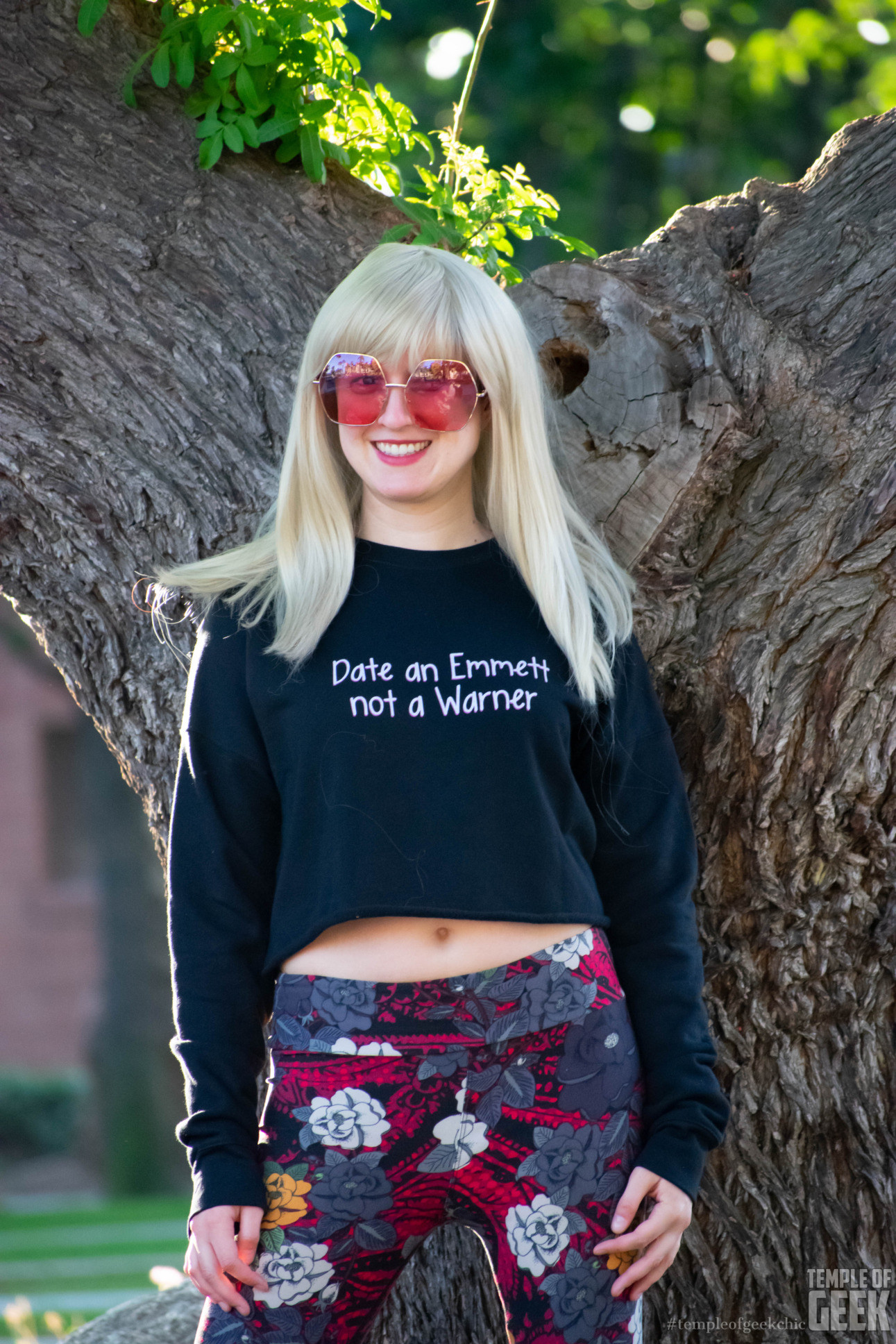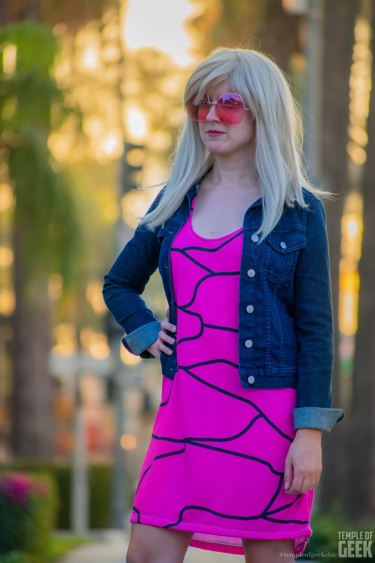 Inspired by the Elle Wood Break Up Dress. It is a lightweight and sporty fit dress made with 100% Polyester and white thread color. Temple of Geek Chic writer Maddie took this dress out for a spin and paired it with a cropped jacket, wedges, and oversized sunglasses. Available exclusively through NVC’s website.