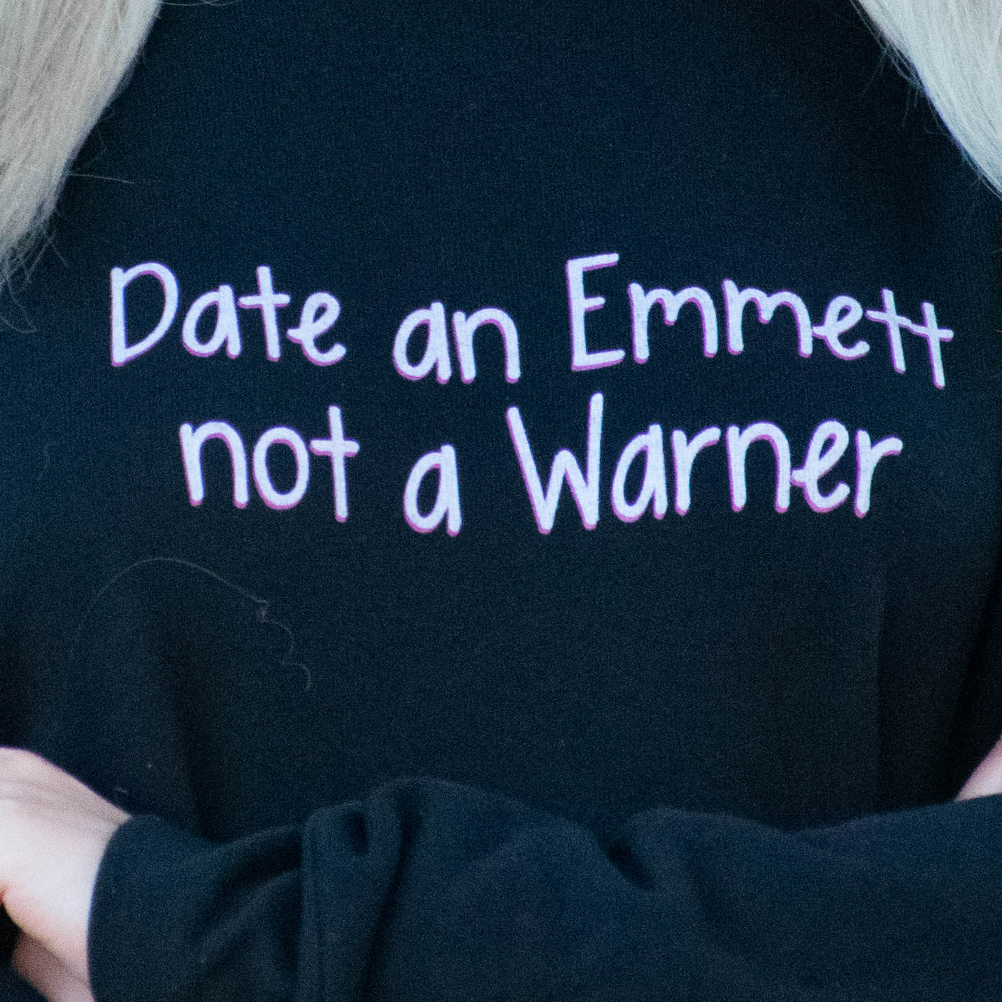 Just as comfy as the “Taking the Dog” sweatshirt, this cropped sweatshirt is a trendier alternative. It has long slouchy sleeves and a raw unfinished edge across the bottom of the sweater. The “Date and Emmett” print is a nod to Emmett Richmond (portrayed by Luke Wilson) who is boyfriend and later husband of Elle Woods.