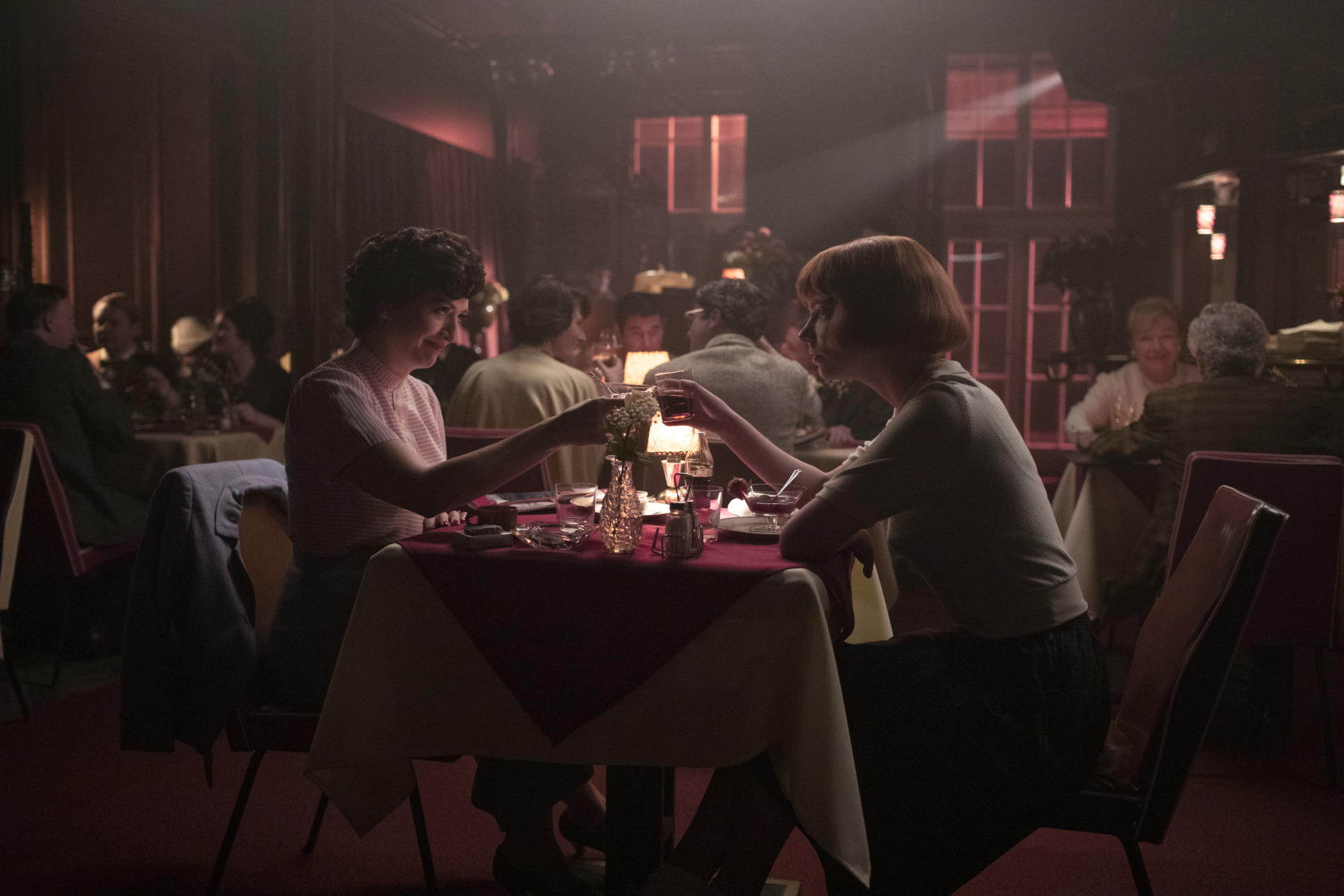 THE QUEENÕS GAMBIT (L to R) ANYA TAYLOR-JOY as BETH HARMON and MARIELLE HELLER as ALMA WHEATLEY in episode 102 of THE QUEENÕS GAMBIT Cr. PHIL BRAY/NETFLIX © 2020