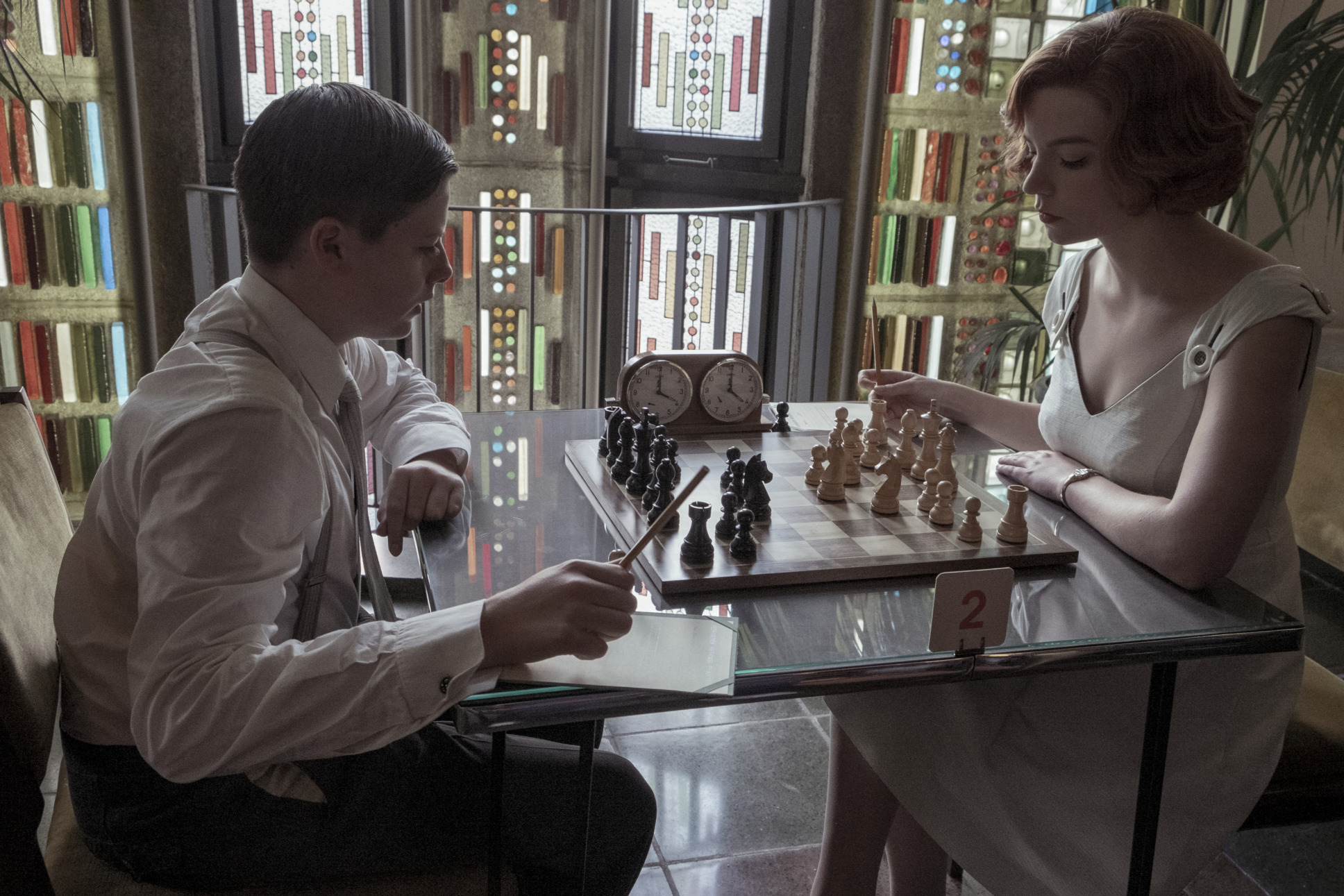 THE QUEEN’S GAMBIT (L to R) ANYA TAYLOR as BETH HARMON in THE QUEEN’S GAMBIT. Cr. CHARLIE GRAY/NETFLIX © 2020