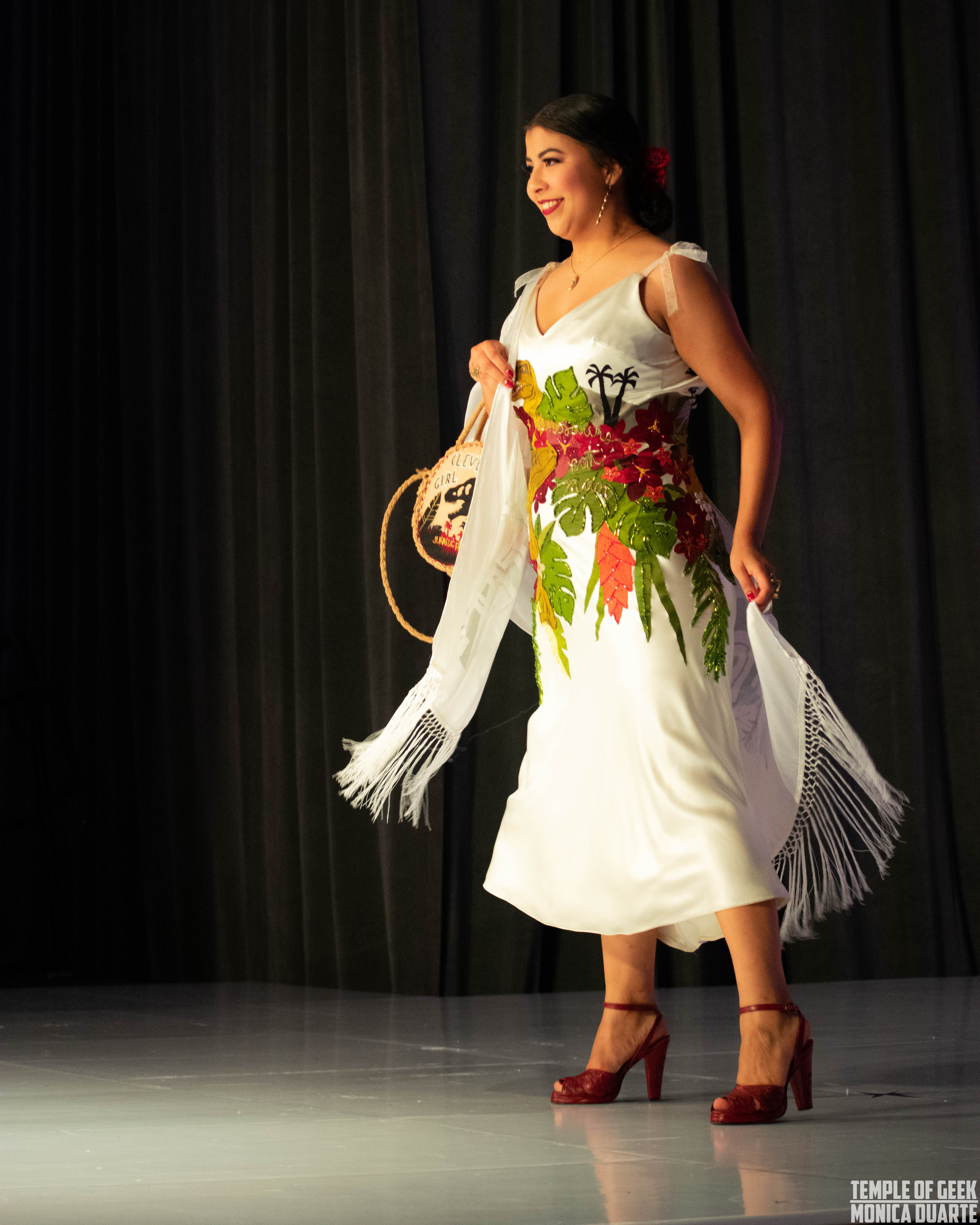 Some designers wore their own designs down the runway while others had models to show off their designs. Regardless, we were blown away by the creativity, the craftsmanship, and elegance of all of these breathtaking designs. Her Universe awarded two winners in the competition (Judges winner – Adria Renee for her Destination: Isla Nublar look inspired by Jurassic Park Audience winner – Sarah Hambly for her Bodak Green look inspired by Marvel’s Loki), but we absolutely believe that every designer and every model was a winner this night. Check out our photos below from all the original designs from the Her Universe Fashion Show.