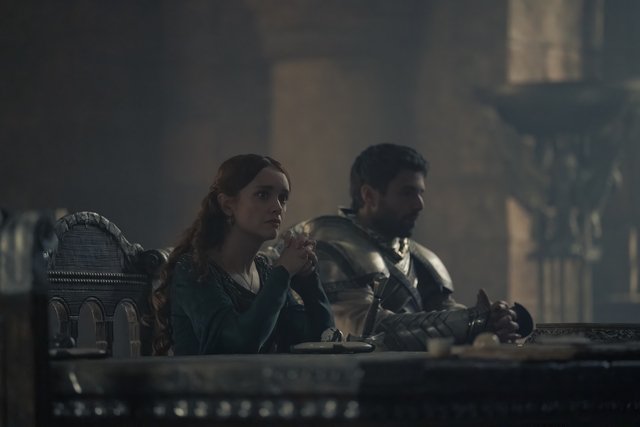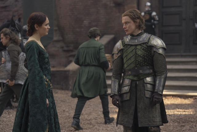 The episode opens with Lord Jason Lannister (Jefferson Hall) and his army of 1000 men not delivering his host to Harrenhall until Prince Aemond TargaryenAemond (Ewan Mitchell) and Vhagar join them. During a small council meeting, Aemond stands furious with the summons from Lord Lannister. As acting Prince Regent, he switches strategies and plots to approach other noble houses and attack from different angles. He seems unwilling to engage Prince Daemon Targaryen/ King Consort (Matt Smith), who is presently taking over Harrenhall. Despite stating “My uncle is a challenge I welcome.’ He calls on his mother, the Dowager Queen Alicent (Olivia Cooke) to relieve her of her duties on the small council, despite her protest.
