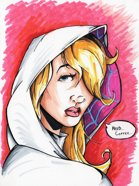 There isn’t a “typical” SDCC day.  There are trends.  The only typical thing I do, is I try to get there early, I really enjoy getting in about an hour or so before the doors open to the public.  I intentionally enter around Hall B, so I have to walk almost the entire length of the exhibit hall, on the way to my table all the way down by Hall G.  Being able to walk by the big booths without swarms of people is amazing.  I don’t get much time to wander around when it’s open, so it’s really my only opportunity to “see” anything.  I then drop off my stuff at my table, then hit up the Starbucks by Hall E for the shortest line it will be all day.  Then I go back to my table, coffee in hand, and set up, and just wait to see what the day brings.  What people I’ll meet, what strange commissions they’ll present. And then just draw most of the day, and hopefully sell some art.
