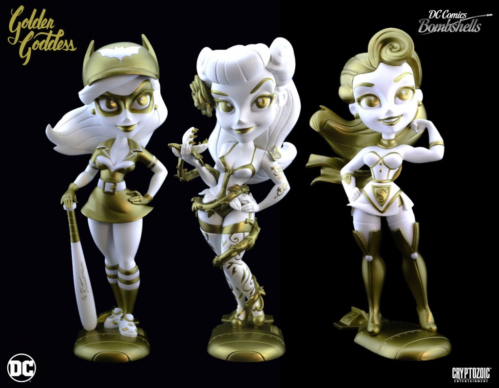 This year at SDCC we have quite a few exclusives! We’ve continued our popular Golden Goddess line with a set of Series 2 Golden Goddesses that includes Supergirl, Poison Ivy, and Batwoman. We’ll also have Golden Goddess Chun-Li, which is our first Street Fighter Knockouts Golden Goddess figure! We actually have an exclusive for almost every line we have, including Metallic Green Blanka and Cammy for our Street Fighter Lil Knockouts fans, the Batwoman DC Pump figure, the Obsidian Idol Batman DC Teekeez figure, Irradiated Cthulhu for our Cryptkins fans, and last but not least, the Ravishing Red Wonder Woman DC Lil Bombshells figure. That’s a total of ten exclusives for SDCC 2018!