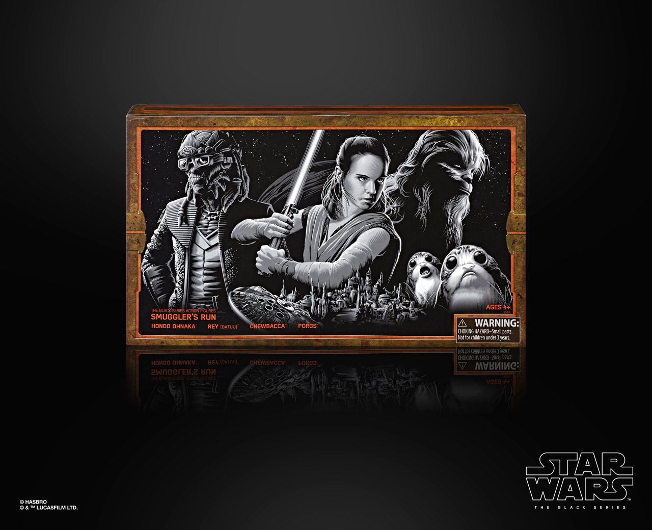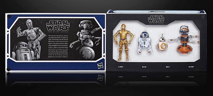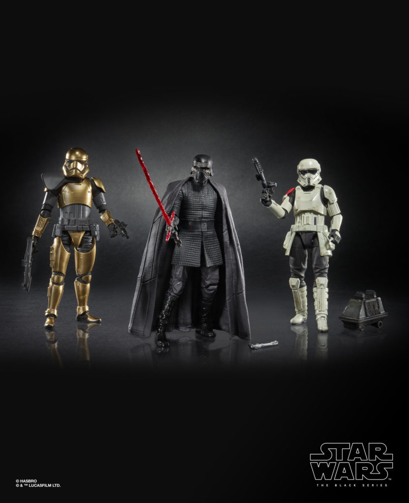 There are new exclusives heading your way. First up, you know that new Disney park that everyone keeps talking about? Fans of Star Wars Black will be able to nab three exclusive 4-pack figures from the park. The First Order set consists of a Mountain Trooper, Kylo Ren, a MSE Droid, and Commander Pyre. The Smuggler’s Run set will contain Hondo Ohnaka, Rey, Porgs, and Chewbacca. Finally, the Droid Depot will include C-3PO, R2-D2, BB-8, and DJ R-3X.