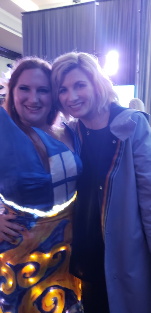 This year so many people have expressed their love of my dress! I am so happy to have been able to share my love of Doctor who and my passion for creating with so many people. It is a humbling experience to be surrounded by so many talented people in the show and have fellow fans come up after the show asking for pictures and telling me how much they loved my dress and that I inspired them. It has been overwhelming but very heartwarming! The best reaction has to be when I got to meet the 13th Doctor backstage. They called me over saying Jodie had asked to see me, after I excitedly ran over to meet her she took one look at my dress and said “Well you’re Bloody Brilliant aren’t you?!” it was so much fun geeking out together about my dress and our sonic screwdrivers!
