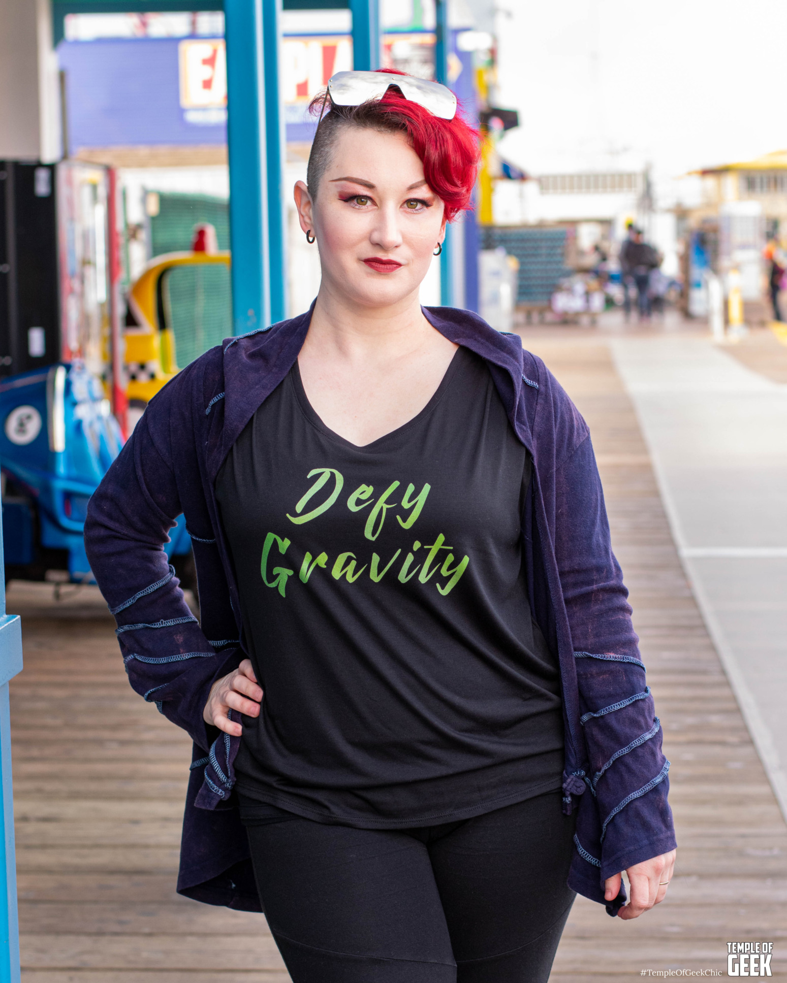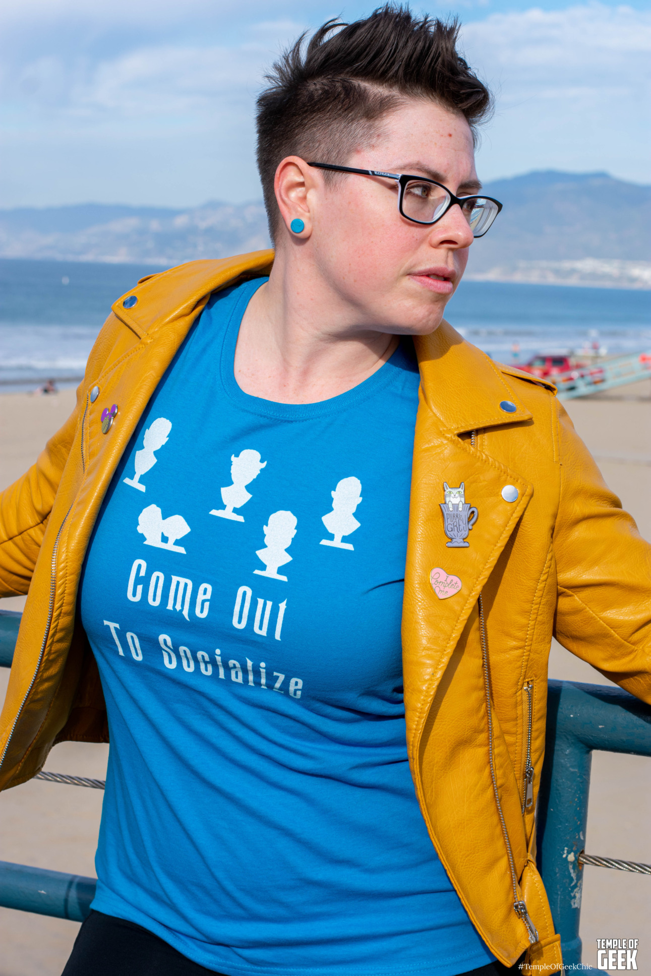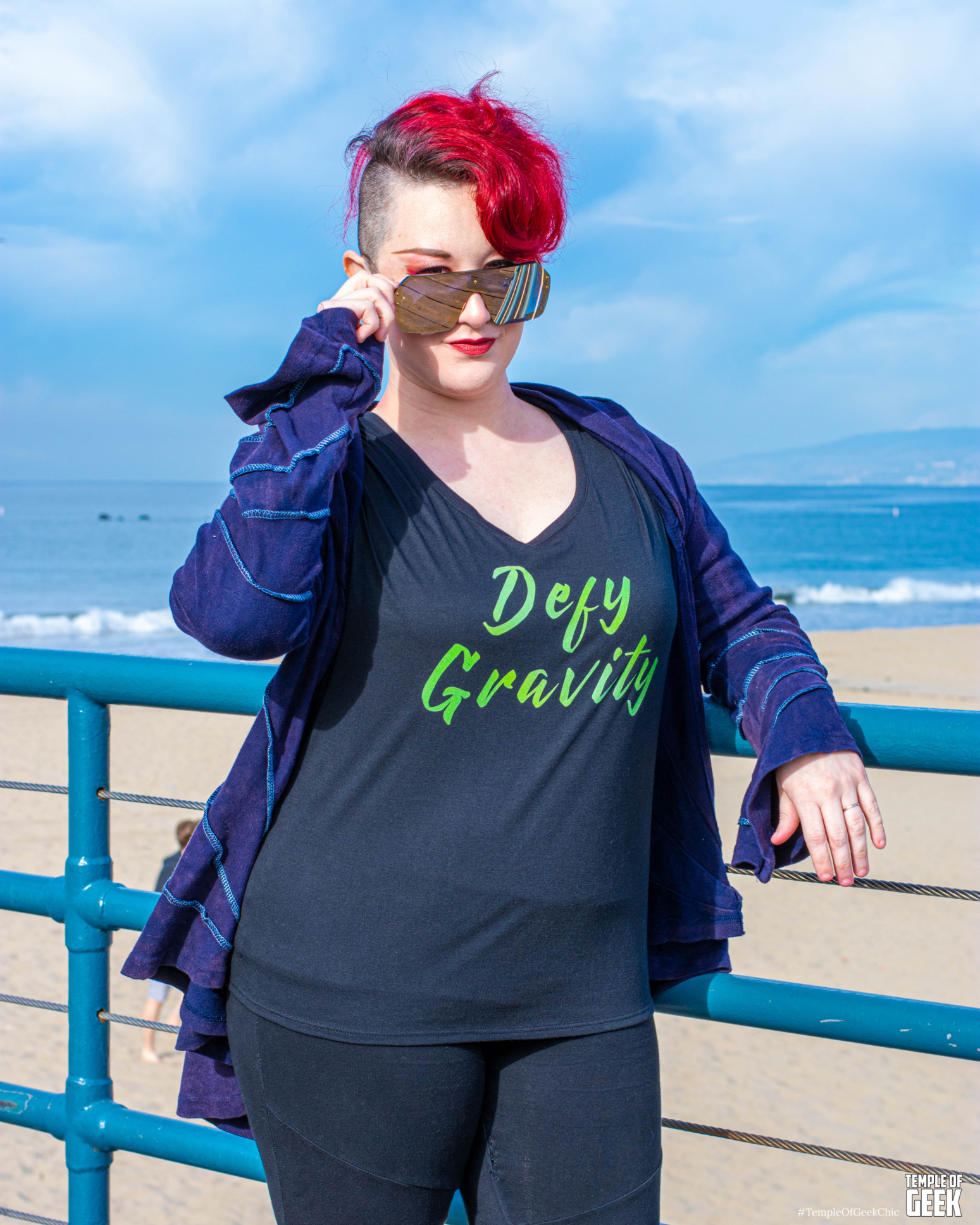 Temple of Geek Chic recruited a group of seasoned cosplayers to rock A Geek Girl’s Tees at the Santa Monica Pier. The group included Rae , Alexandra, Christina, Maddie, and Aaron.