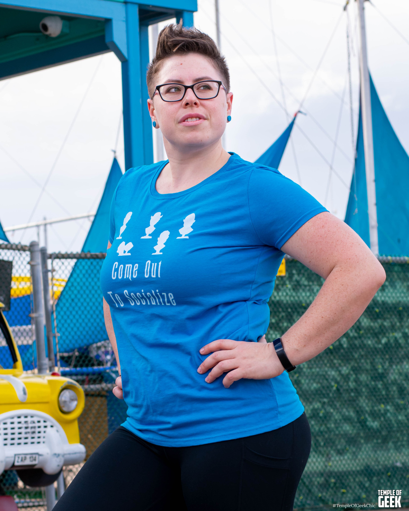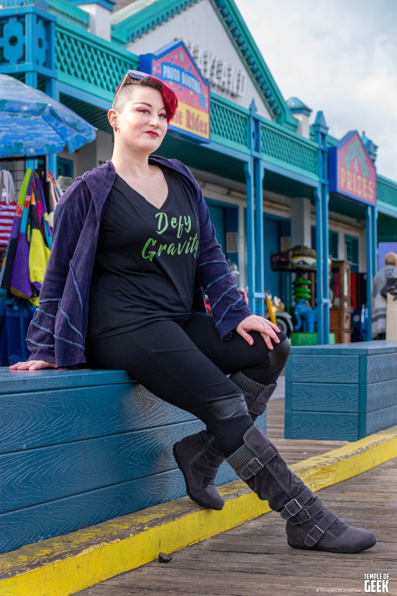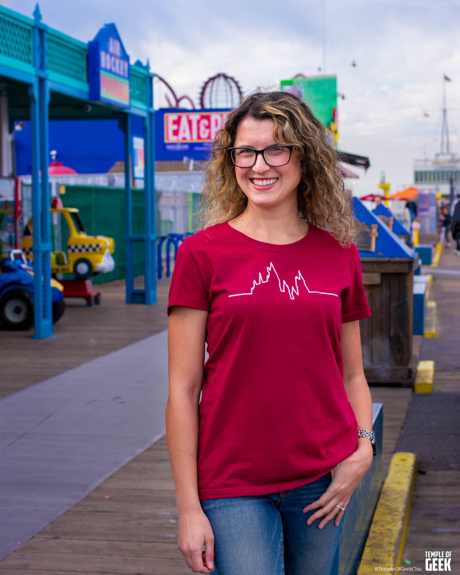 Temple of Geek Chic recruited a group of seasoned cosplayers to rock A Geek Girl’s Tees at the Santa Monica Pier. The group included Rae , Alexandra, Christina, Maddie, and Aaron.